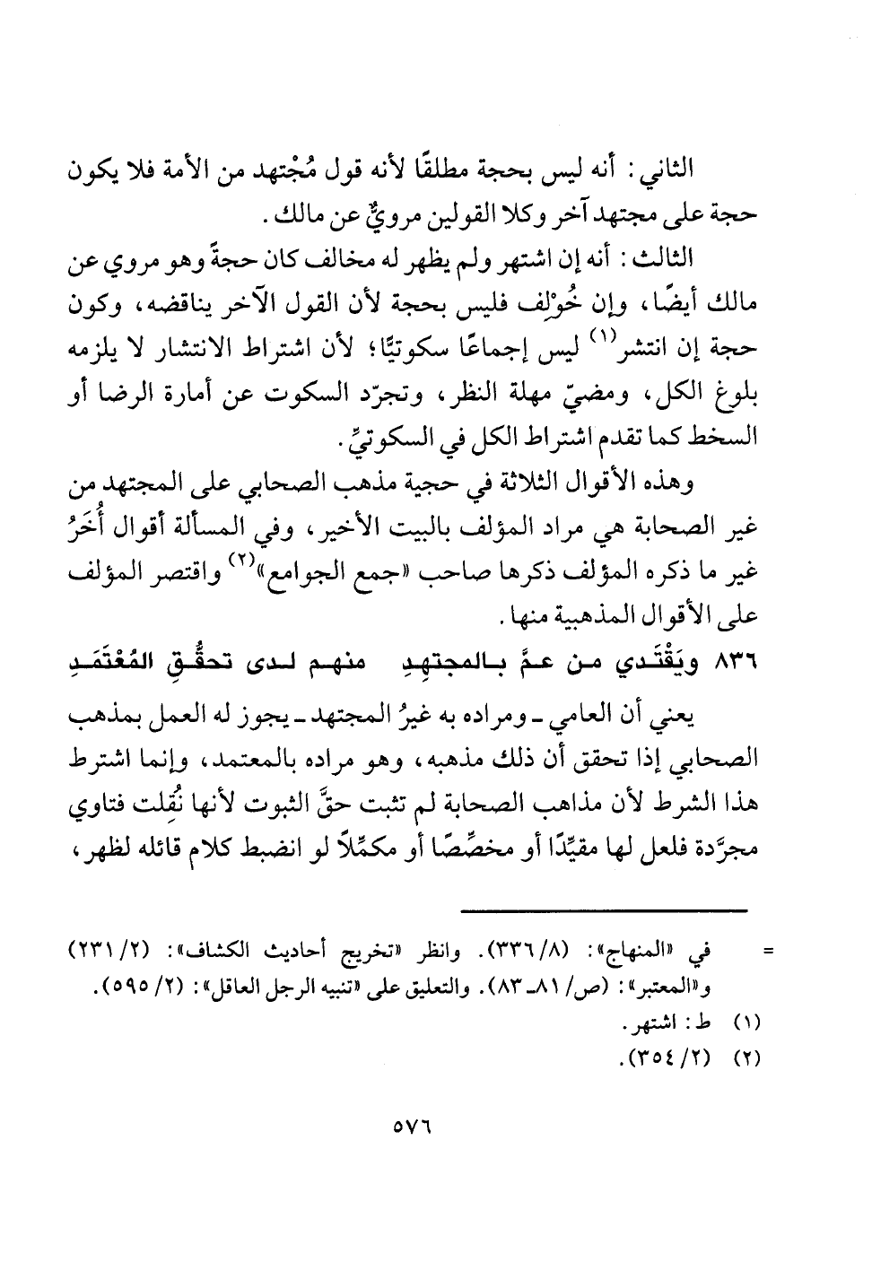 836 ويقتدي من عنم بالمجتهد منهم لدى تحقق المعتمد