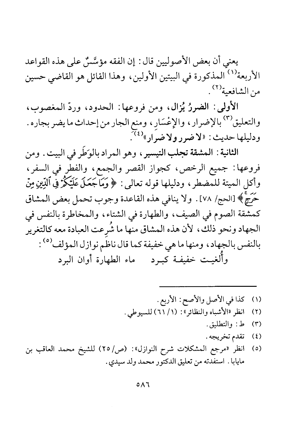 (5) انظر "مرجع المشكلات شرح النوازل ": (ص/25) للشيخ محمد العاقب بن