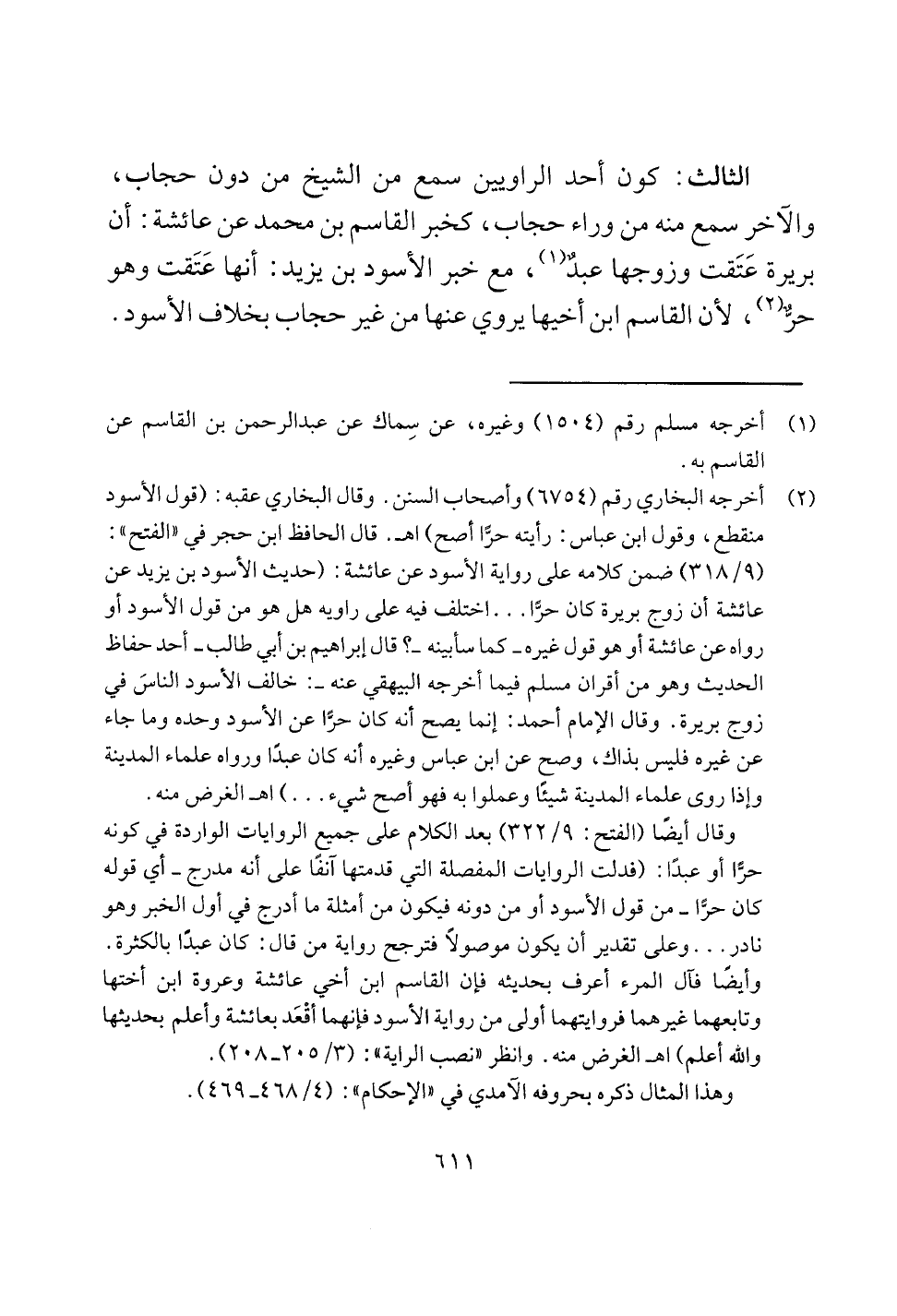 والاخر سمع منه من وراء حجاب، كخبر القاسم بن محمد عن عائشة: ا ن