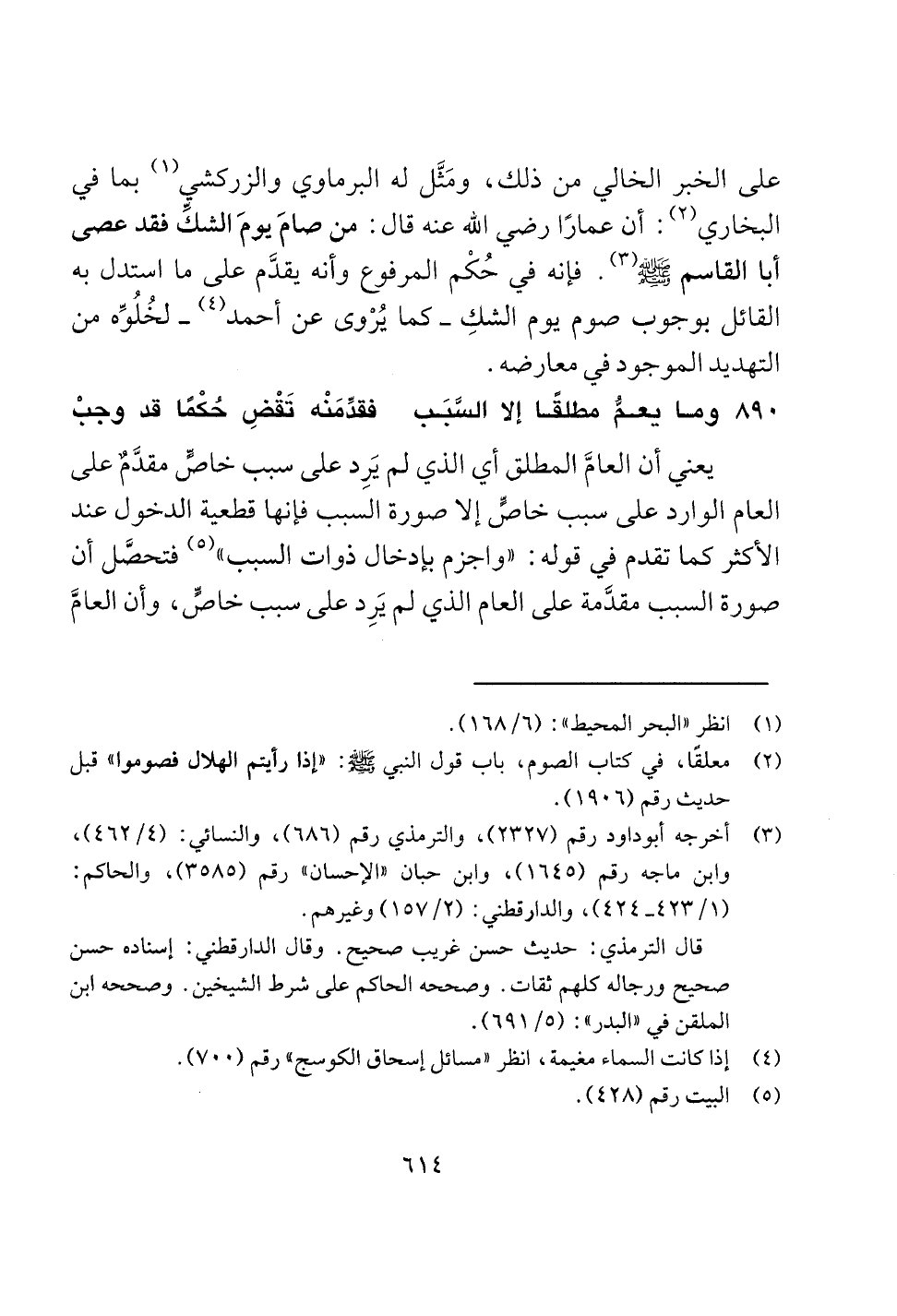 890 وما يعم مطلقا الا السبب فقدمنه تقض حكما قد وجب