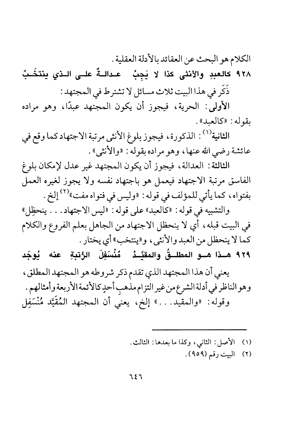 928 كالعبد والأنثى كذا لا يجلث عدالة على الذي ينتخب