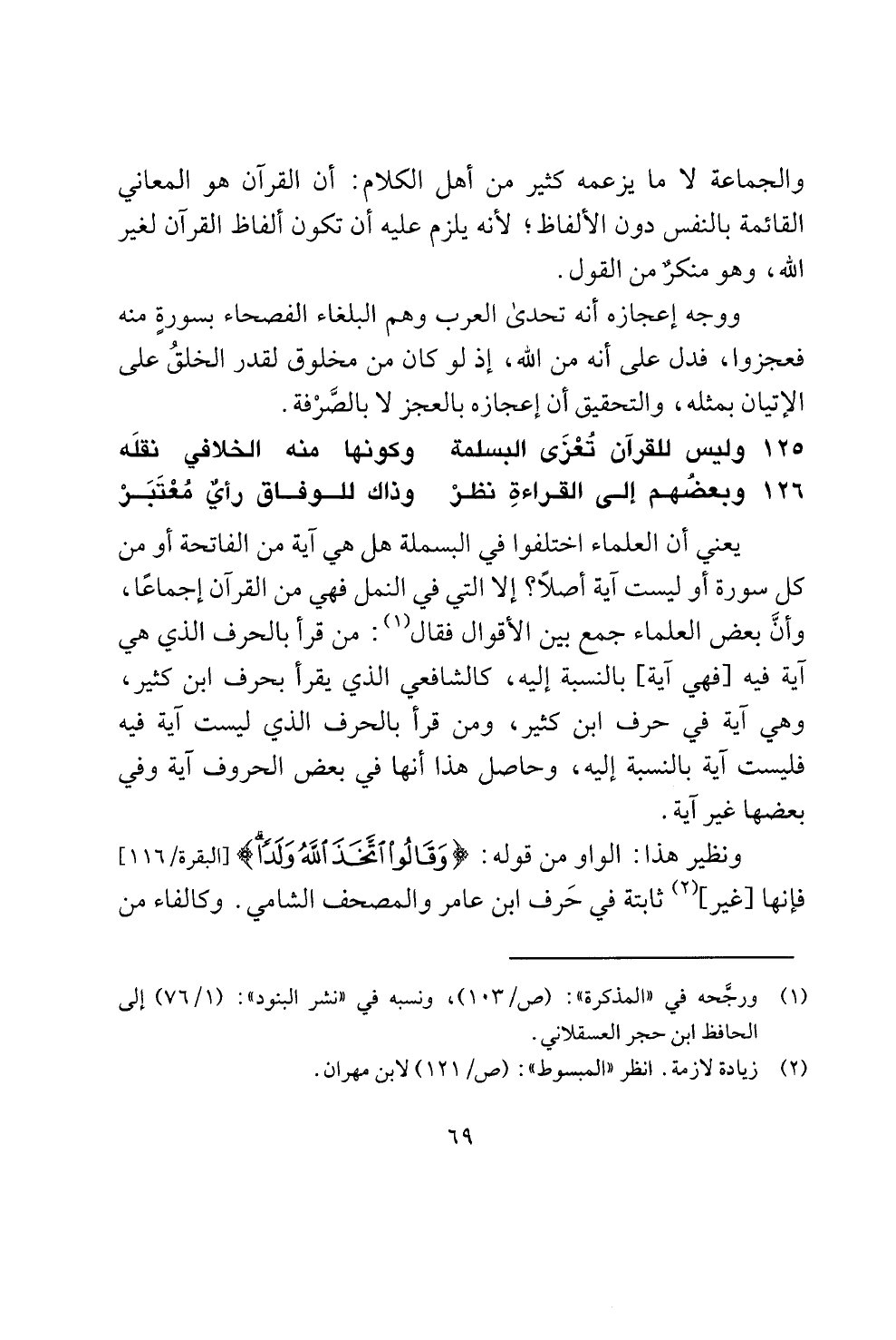 125 وليس للقران تعزى 1 لبسلمة وكونها منه الخلافي نقله