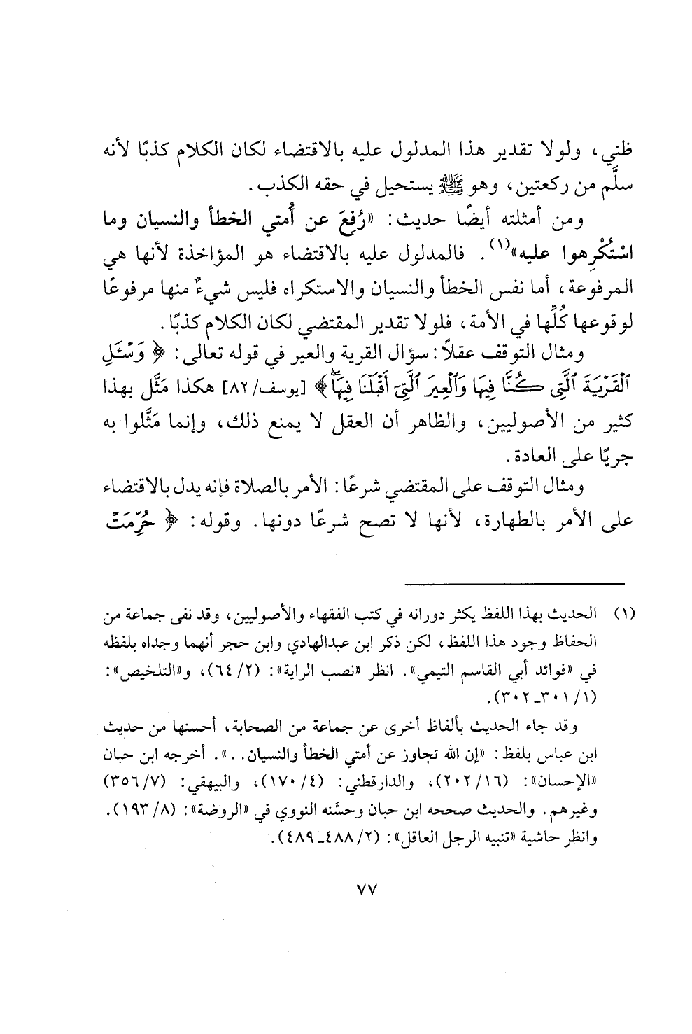 ومن أمثلته ايضا حديث: "ركاع عن امتي الخطا والنسيان وما