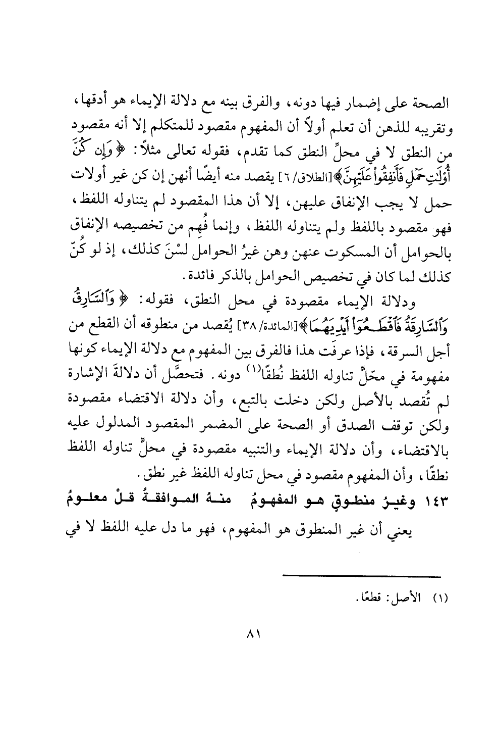 143 وغيز منطوق هو] لمفهوئم منه الموافقة قل معلوئم