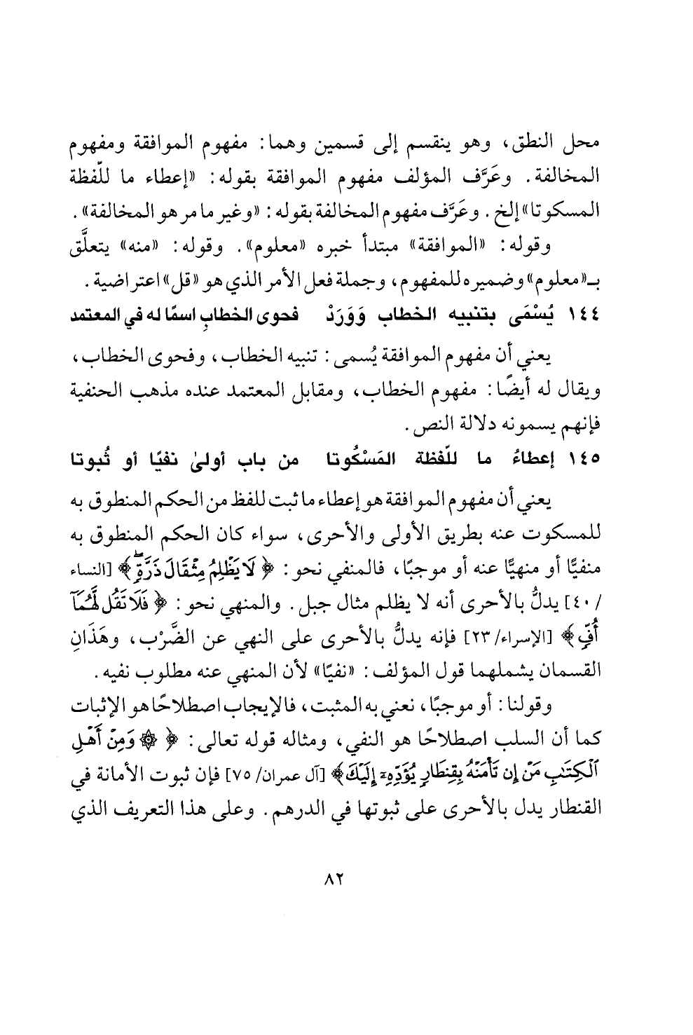 144 ئسمى بتنبيه الخطاب وورد فحوى الخطاب اسما له في المعتمد
