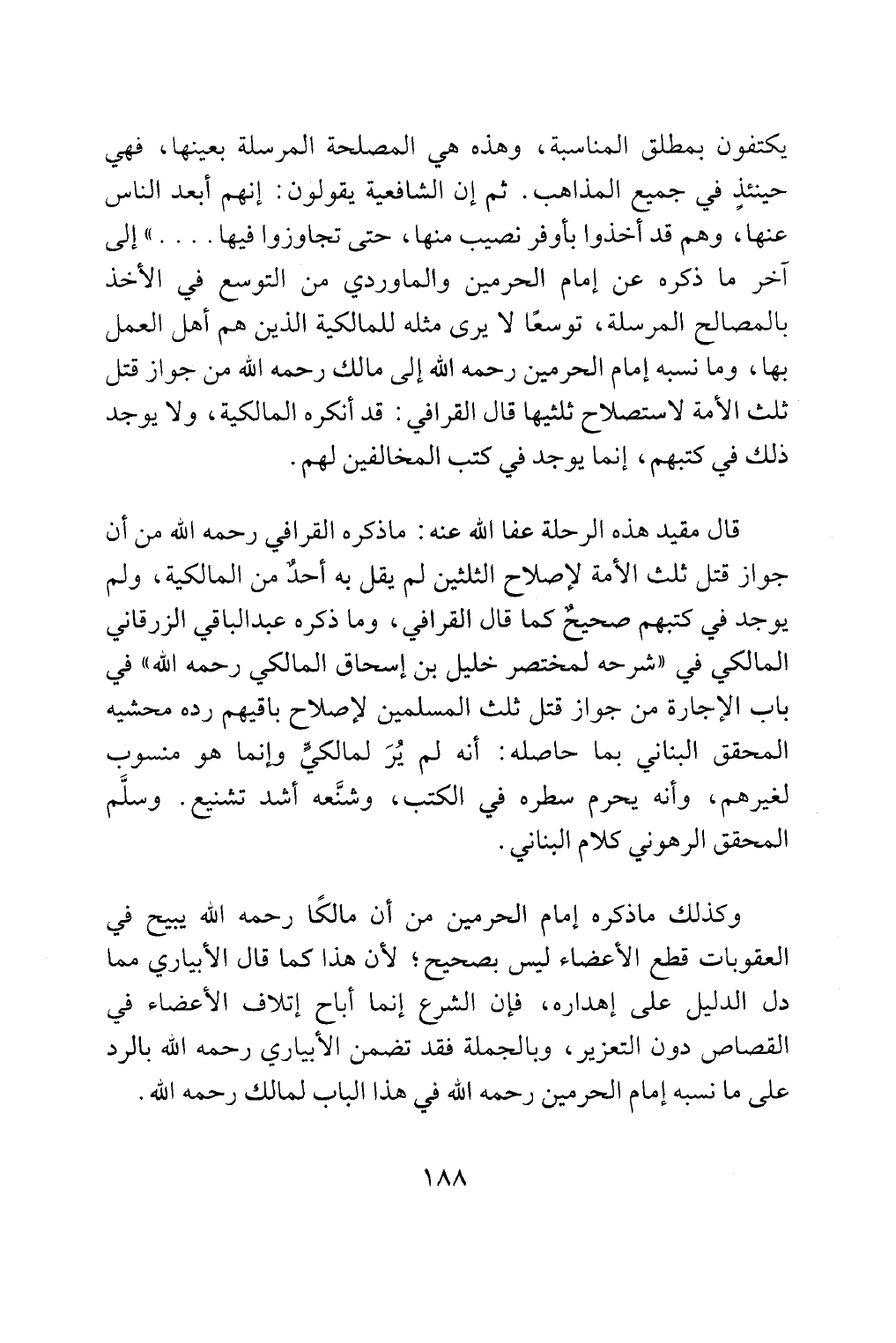 ثلث الأمة لاستصلاح ثلثيها قال القرافي: قد أنكره المالكية، ولا يوجد