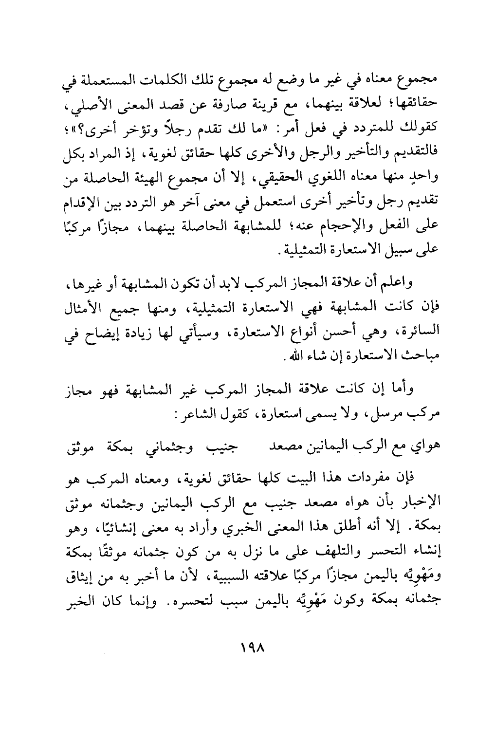 واعلم أن علاقة المجاز المركب لابد أن تكون المشابهة أو غيرها،