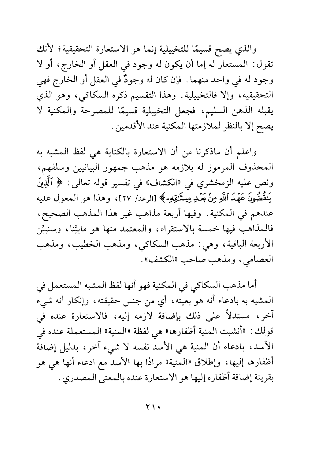 عندهم في المكنية. وفيها أربعة مداهب غير هذا المذهب الصحيح،