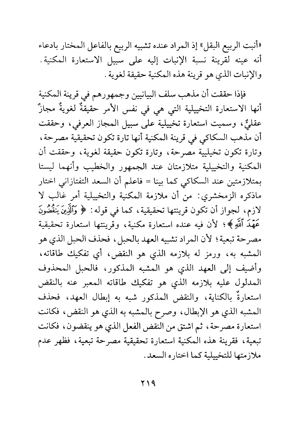 فاذا حققت أن مذهب سلف البيانيين وجمهورهم في قرينة المكنية
