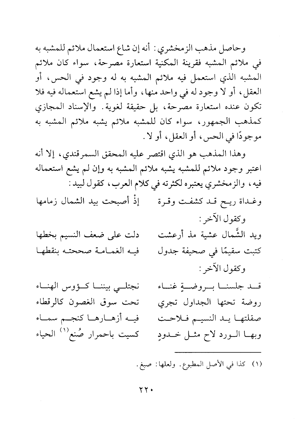 وحاصل مذهب الزمخشري: انه إن شاع استعمال ملائم للمشبه به
