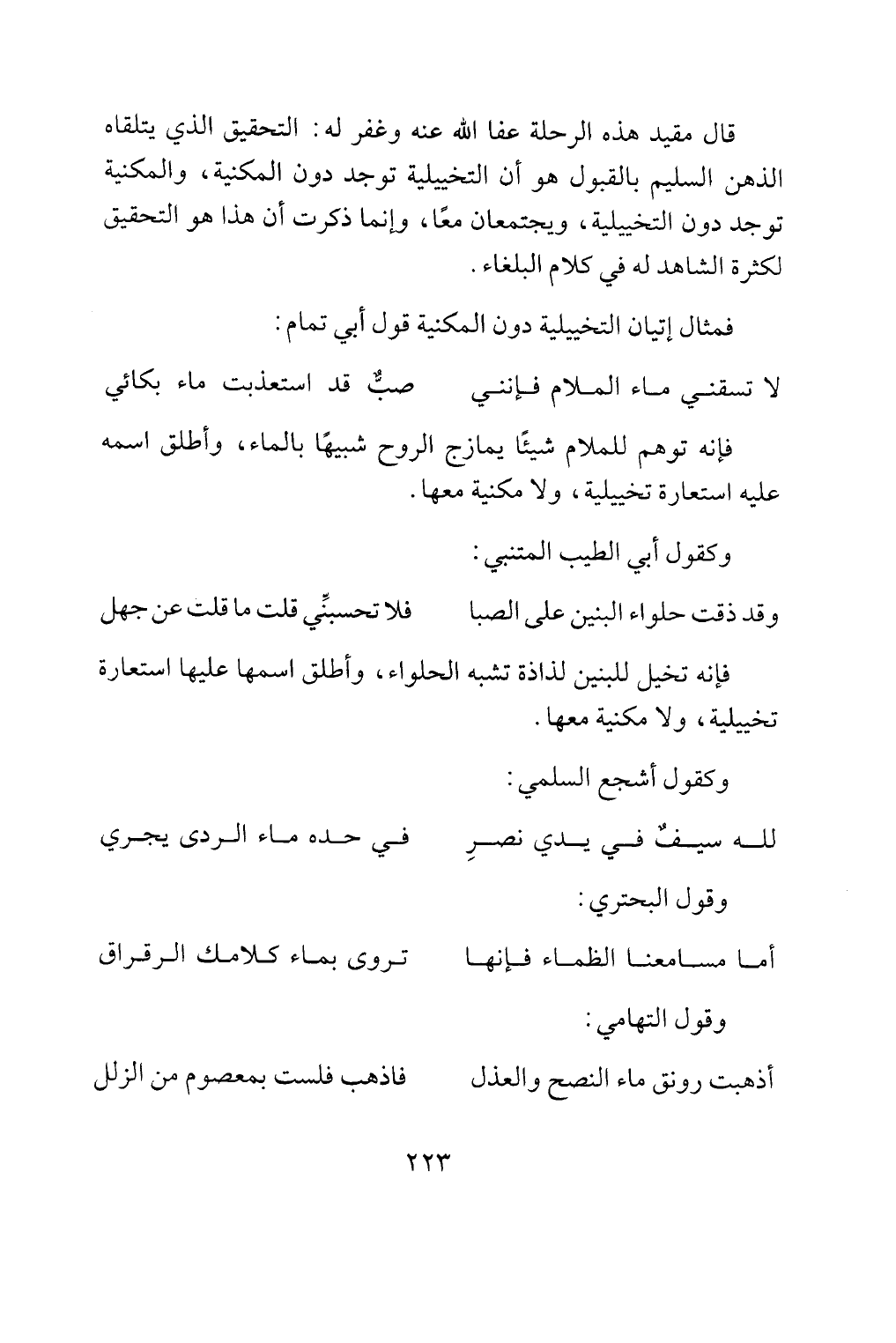 فمثال إتيان التخييلية دون المكنية قول ابي تمام: