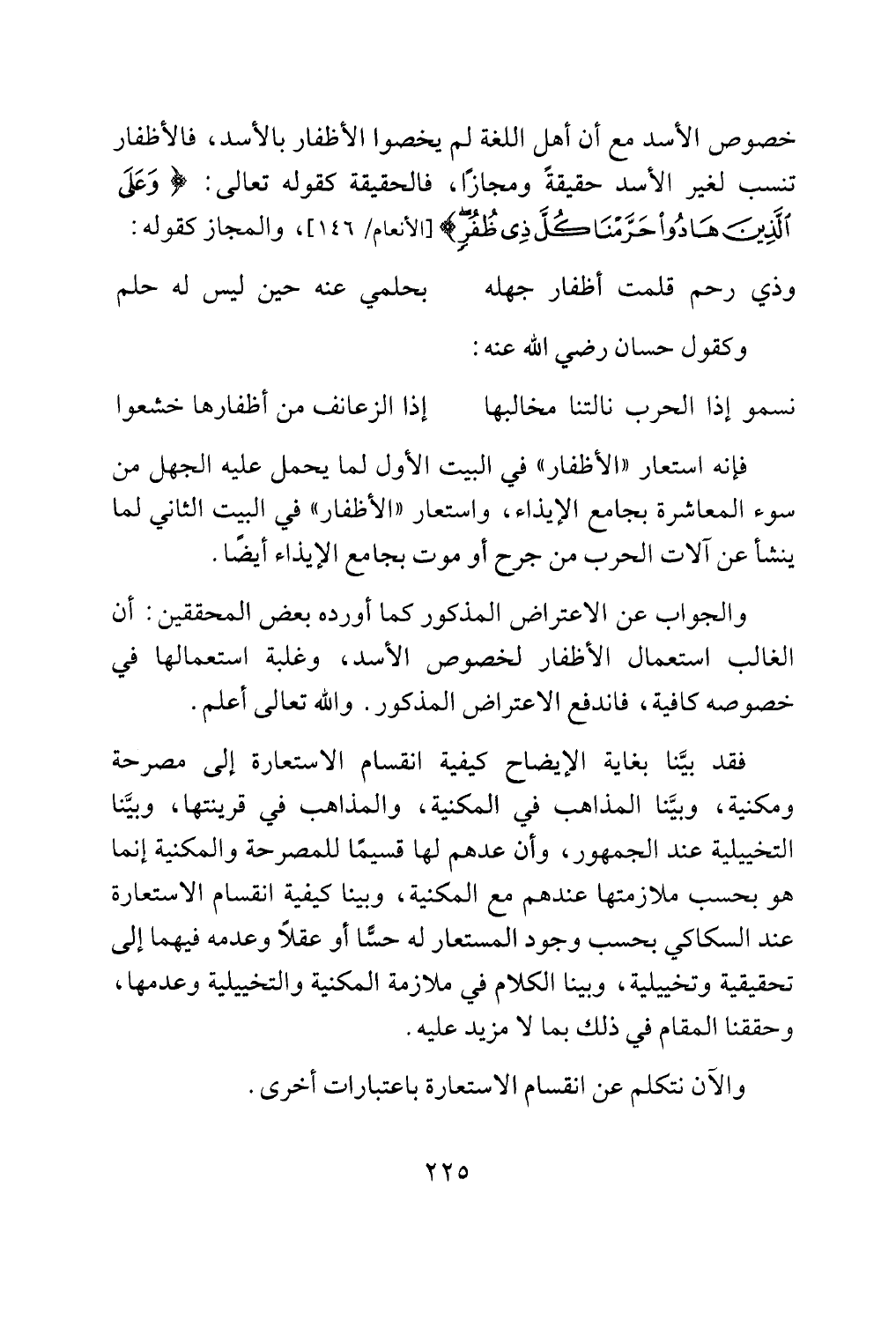 ومكنية، وبينا المذاهب في المكنية، والمذاهب في قرينتها، وبينا