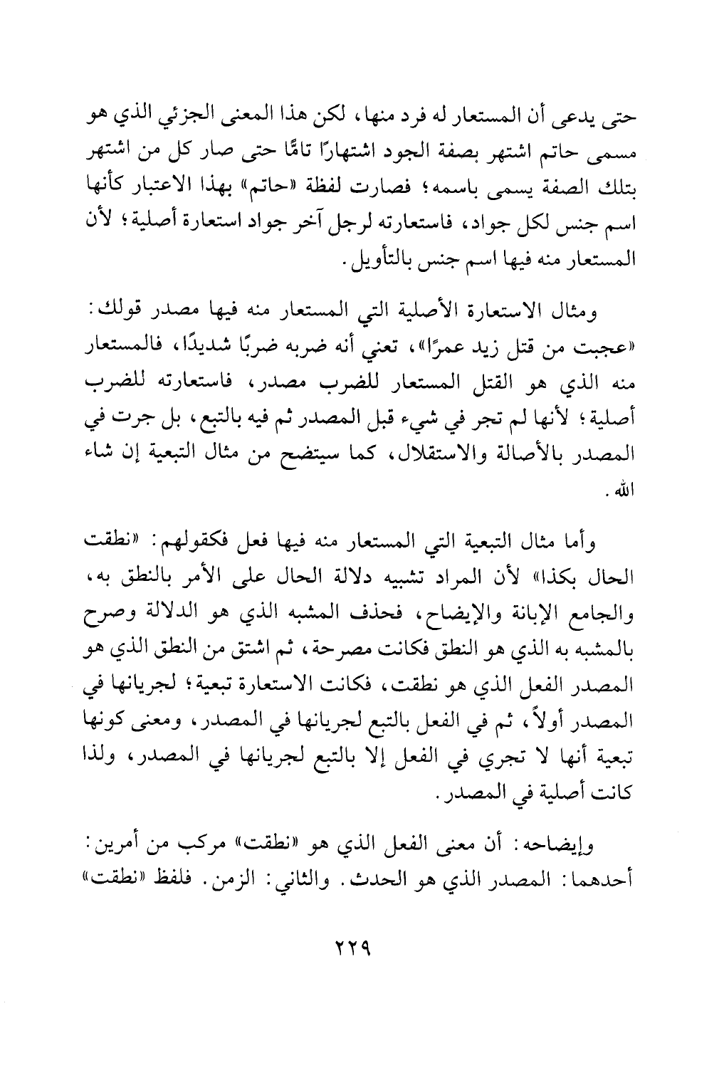 واما مثال التبعية التي المستعار منه فيها فعل فكقولهم: "نطقت