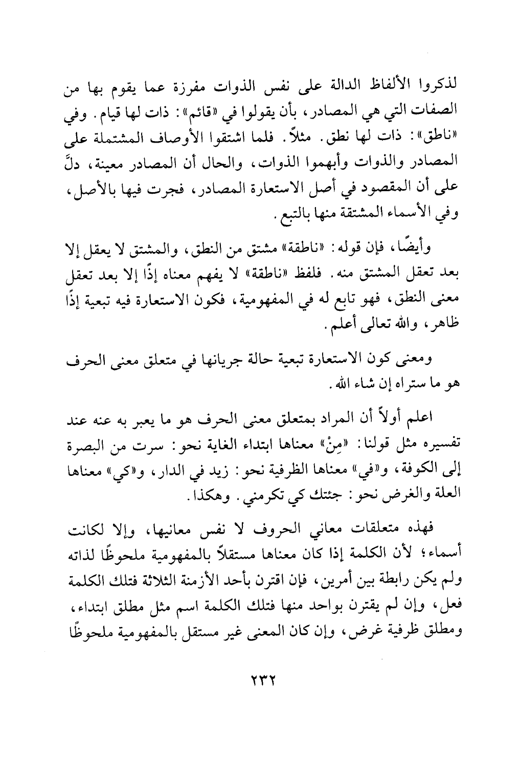 اعلم أولا ن المراد بمتعلق معنى الحرف هو ما يعبر به عنه عند