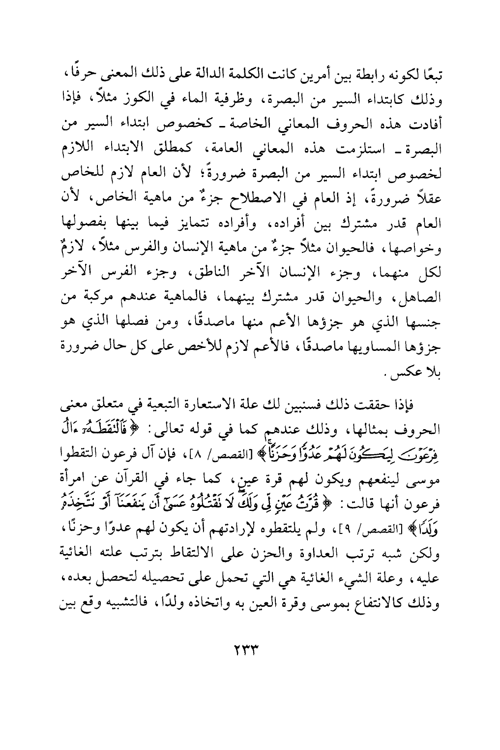 وخواصها، فالحيوان مثلا جزء من ماهية الإنسان والفرس مثلا، لازم
