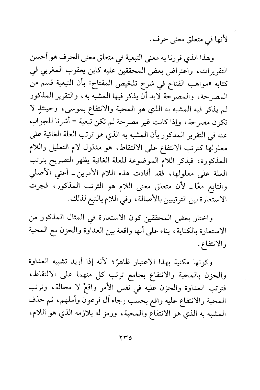 كتابه "مواهب الفتاح دي شرح تلخيص المفتاج" بأن التبعية قسم من