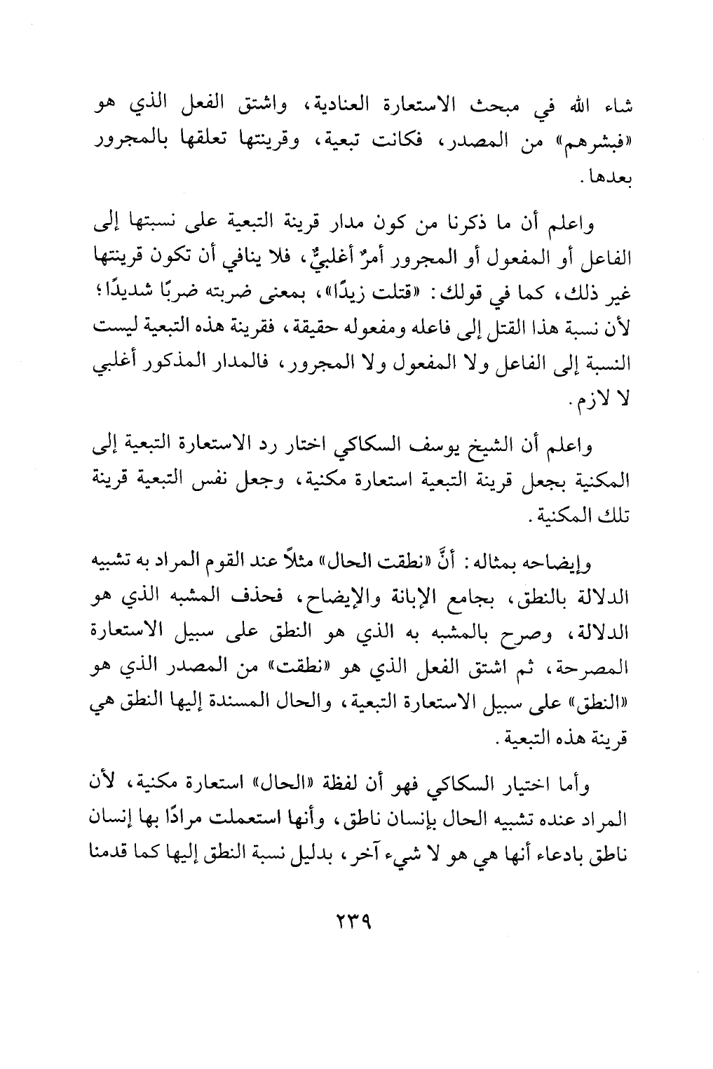 واعلم أن الشيخ يوسف السكاكي اختار رد الاستعارة التبعية إلى