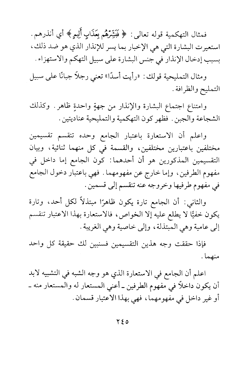 واعلم ان الاستعارة باعتبار الجامع وحده تنقسم تقسيمين