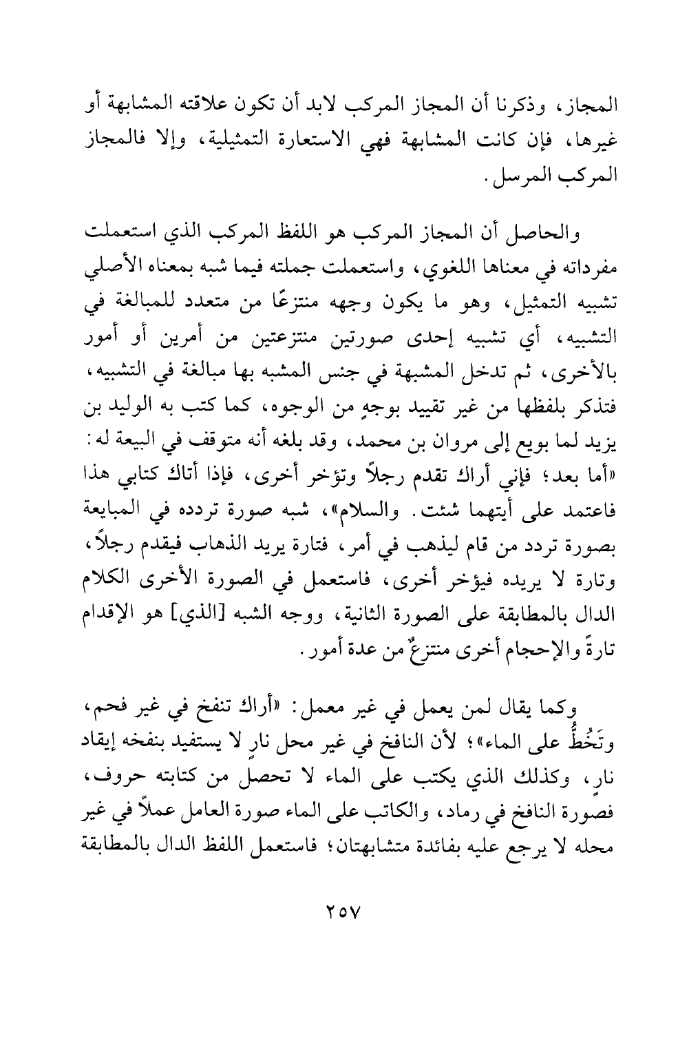 والحاصل ان المجاز المركب هو اللفظ المركب الذي استعملت