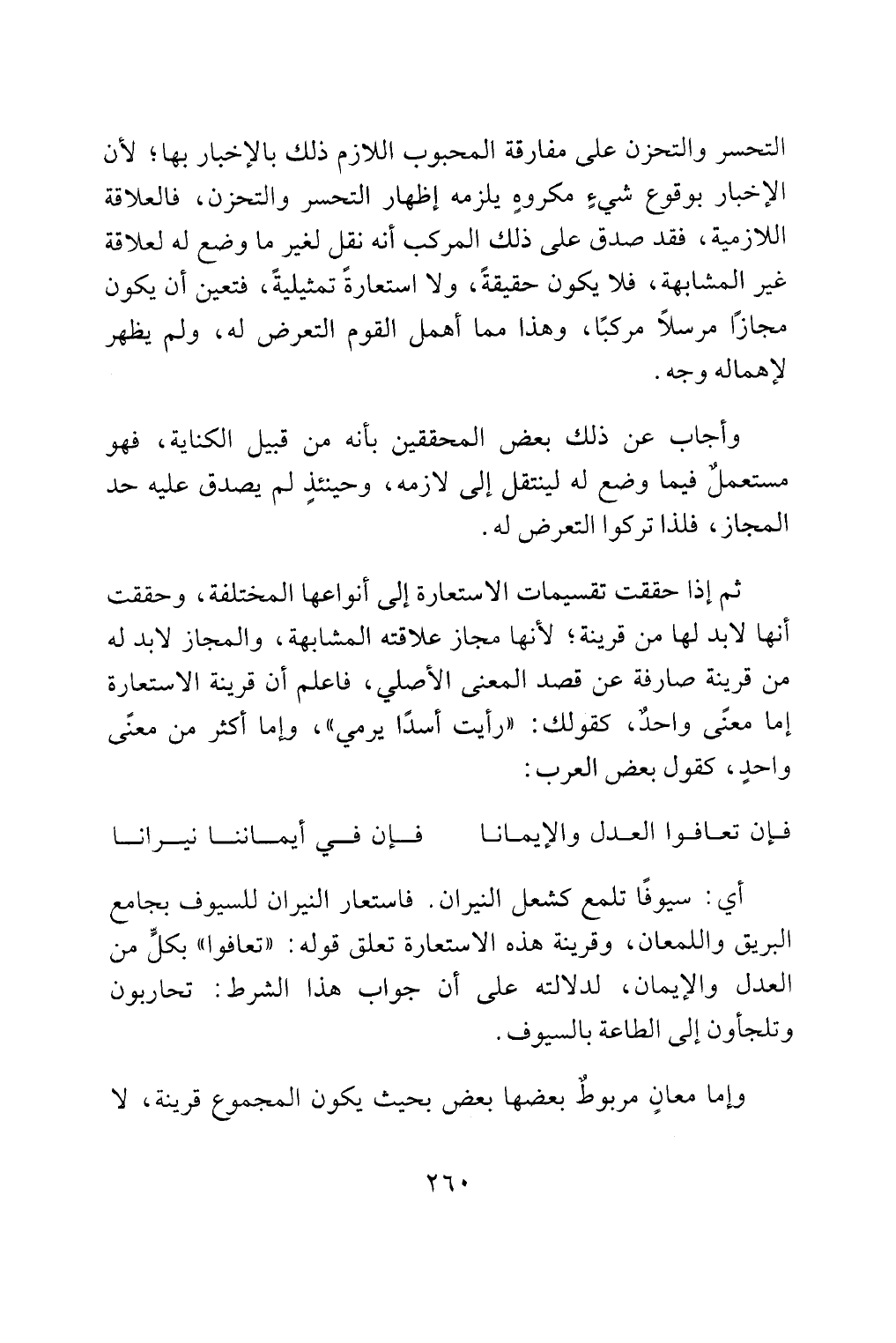 ثم إذا حققت تقسيمات الاستعارة إلى أنواعها المختلفة، وحققت