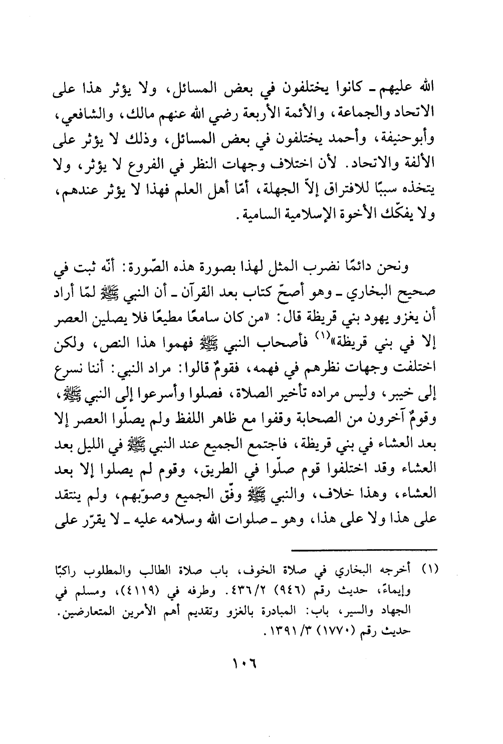 إلا في بني قريظة " (1) فاصحاب النبي لمجيم فهموا هذا النص، ولكن