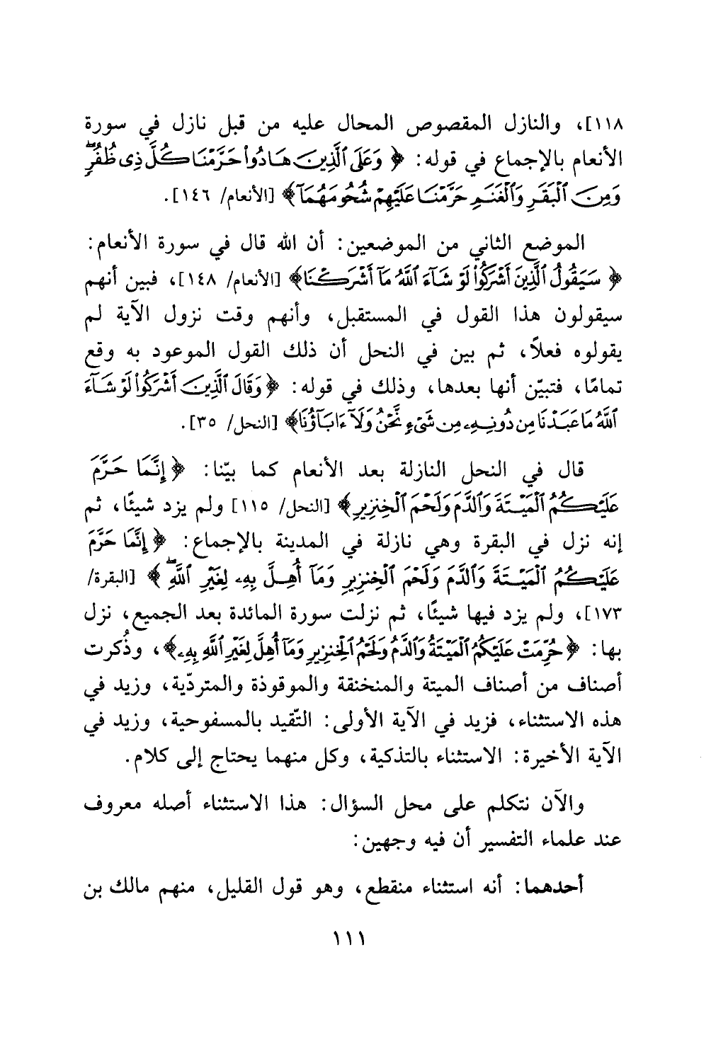 الآية الاخيرة: الاستثناء بالتذكية، وكل منهما يحتاج إلى كلام.