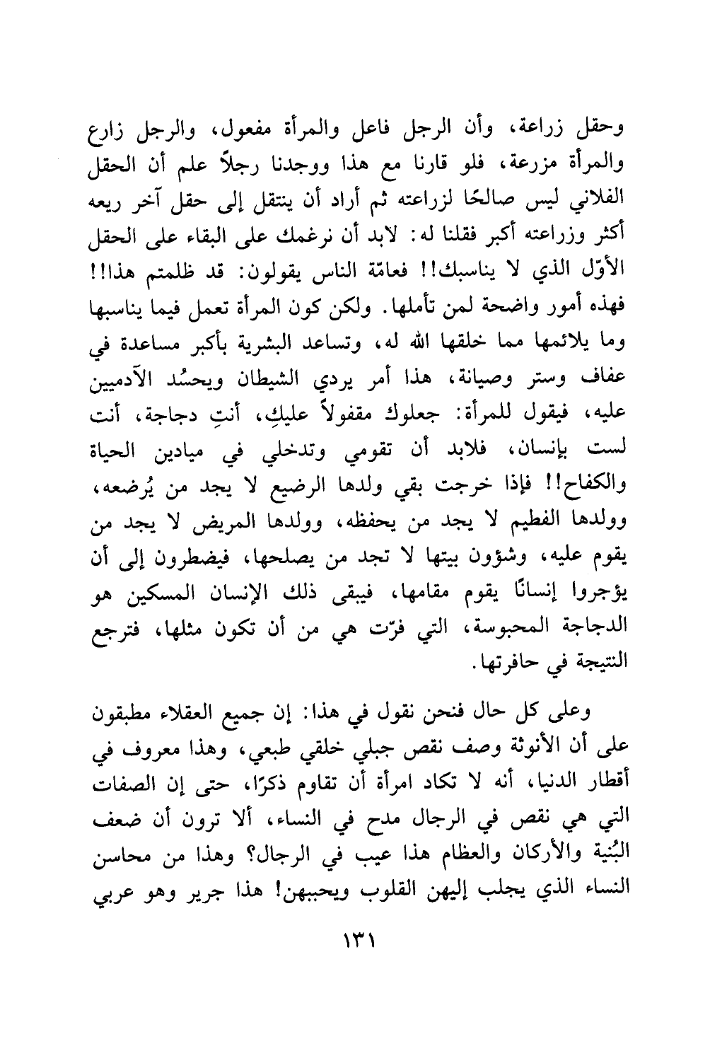 التي هي نقص في الرجال مدح في النساء، ألا ترون أن ضعف