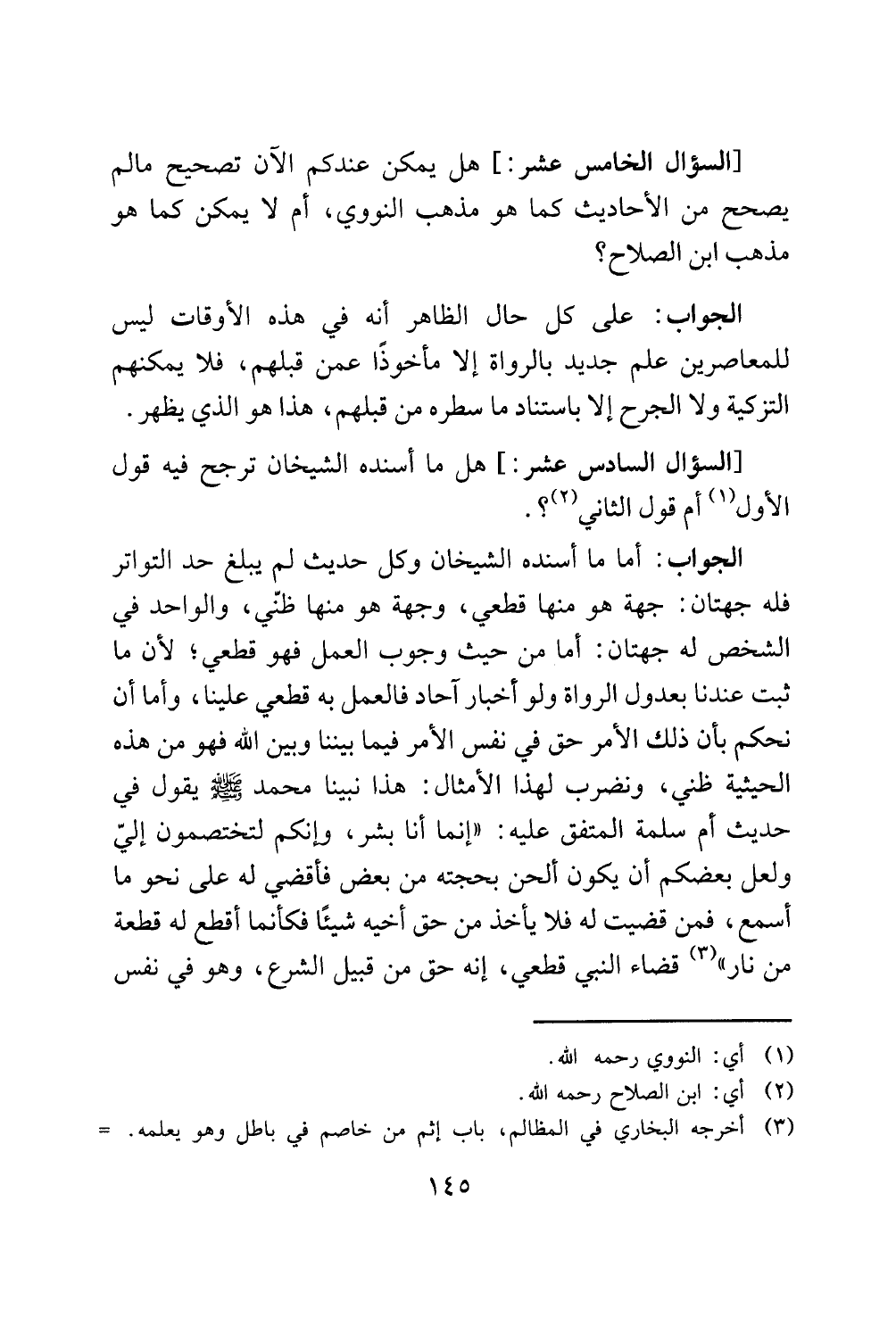 الجواب: اما ما أسنده الشيخان وكل حديث لم يبلغ حد التواتر