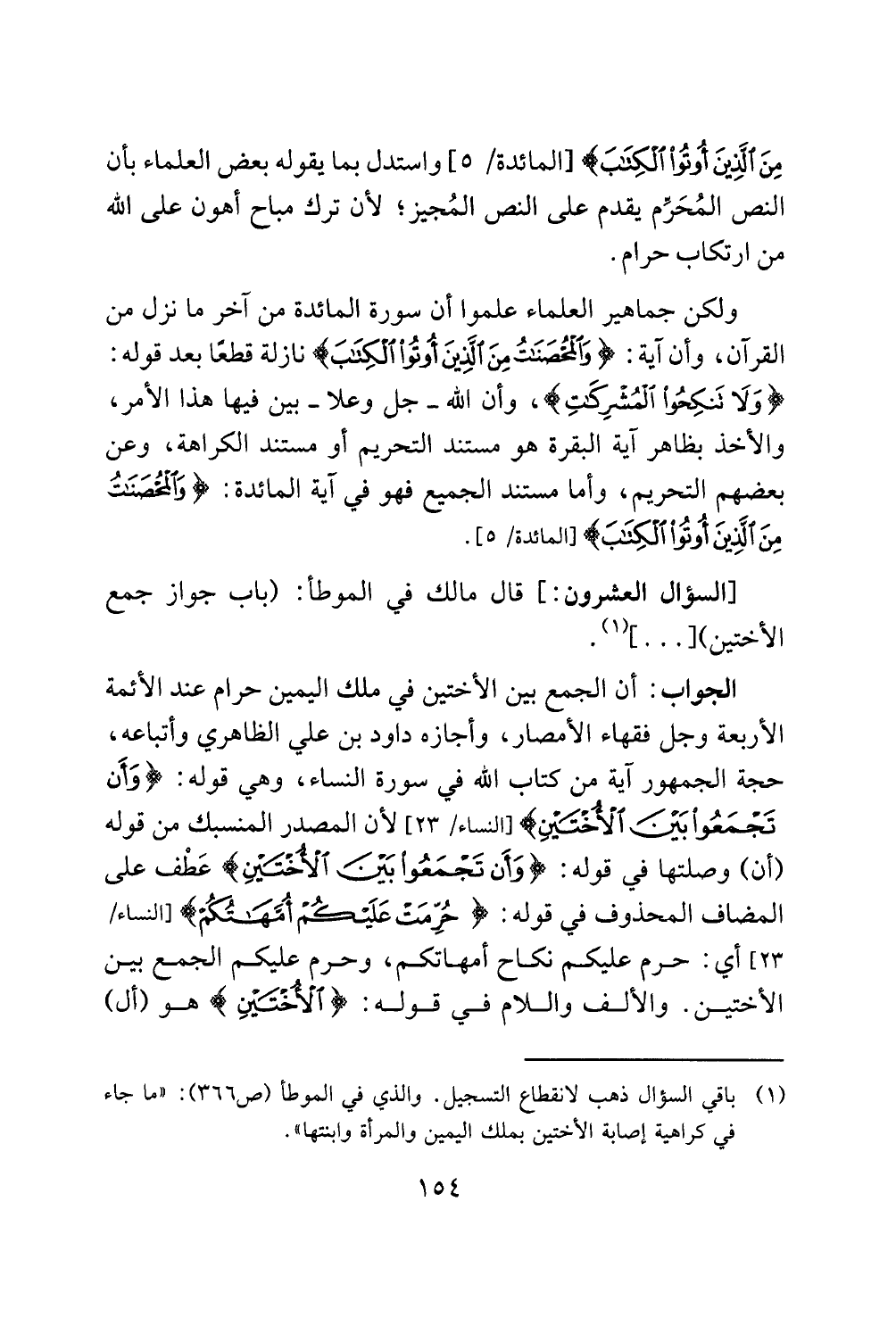 من لذين أونوا الف) [المائدة / 5] واستدل بما يقولبعض العلماء بان