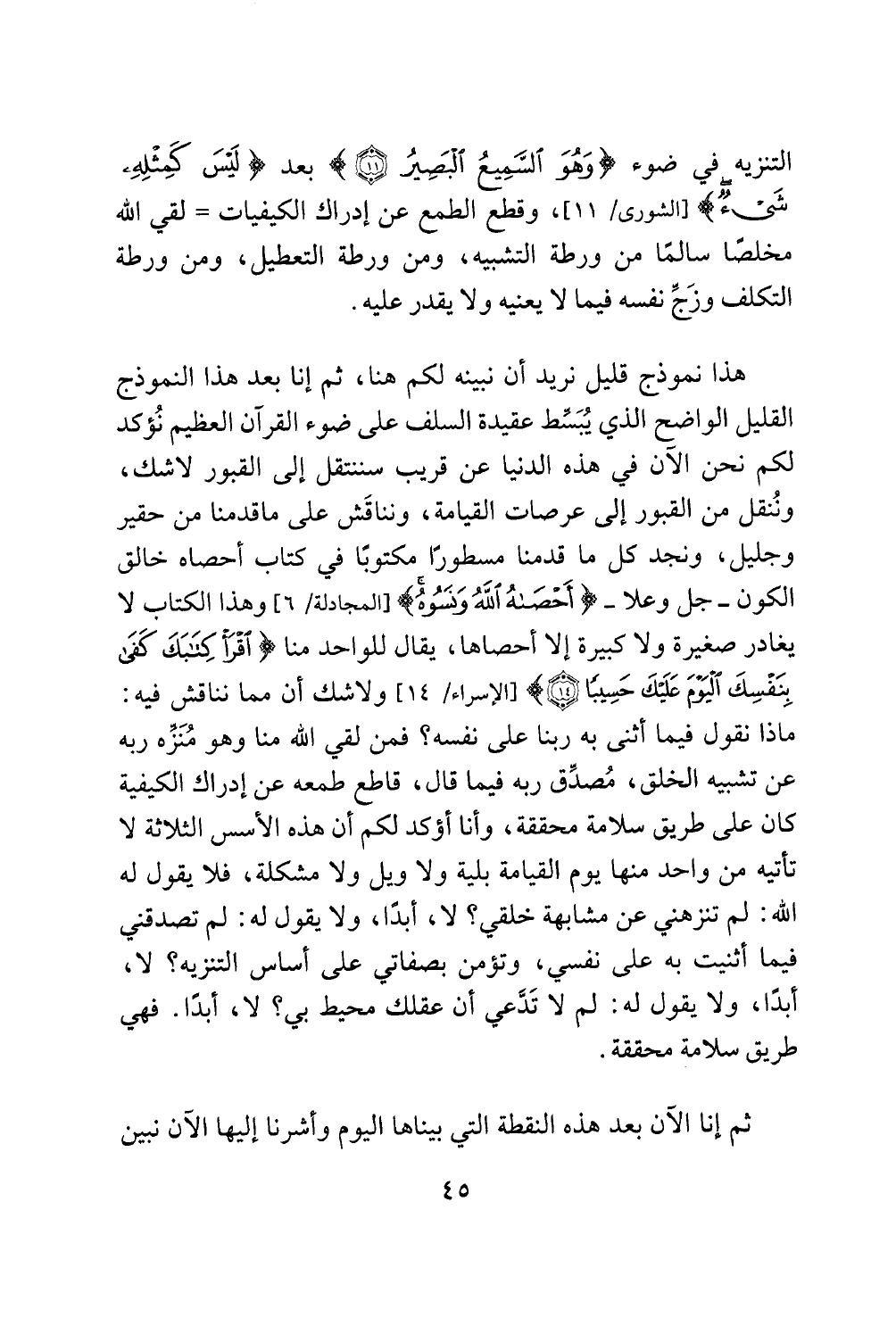 القليل الواضح الذي يبسط عقيدة السلف على ضوء القران العظيم نؤكد