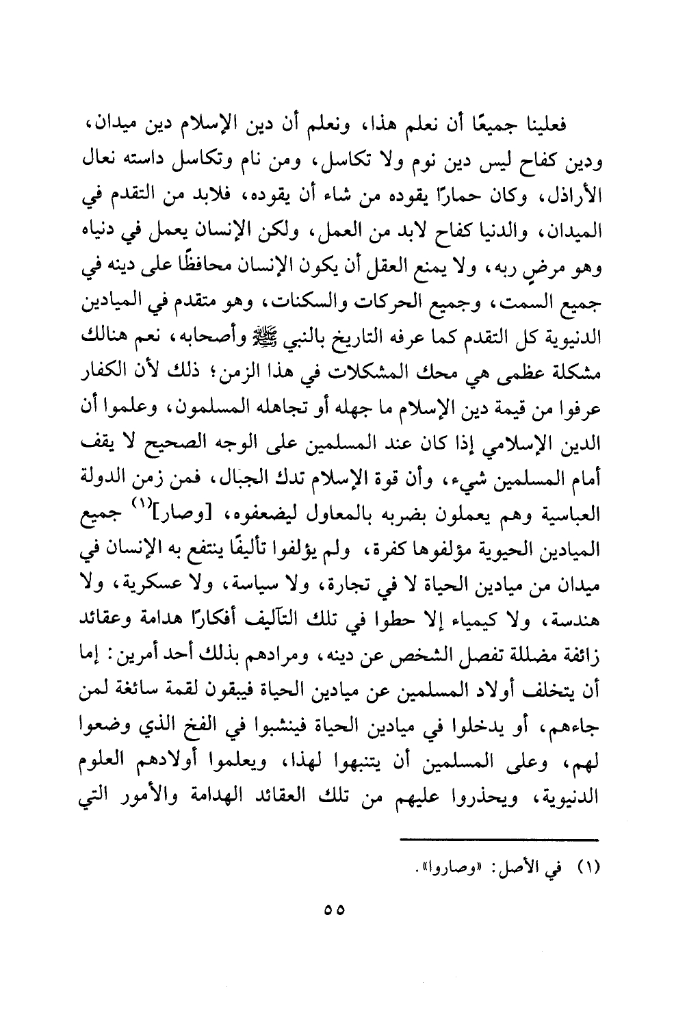 أن يتخلف أولاد المسلمين عن ميادين الحياة فيبقون لقمة سائغة لمن