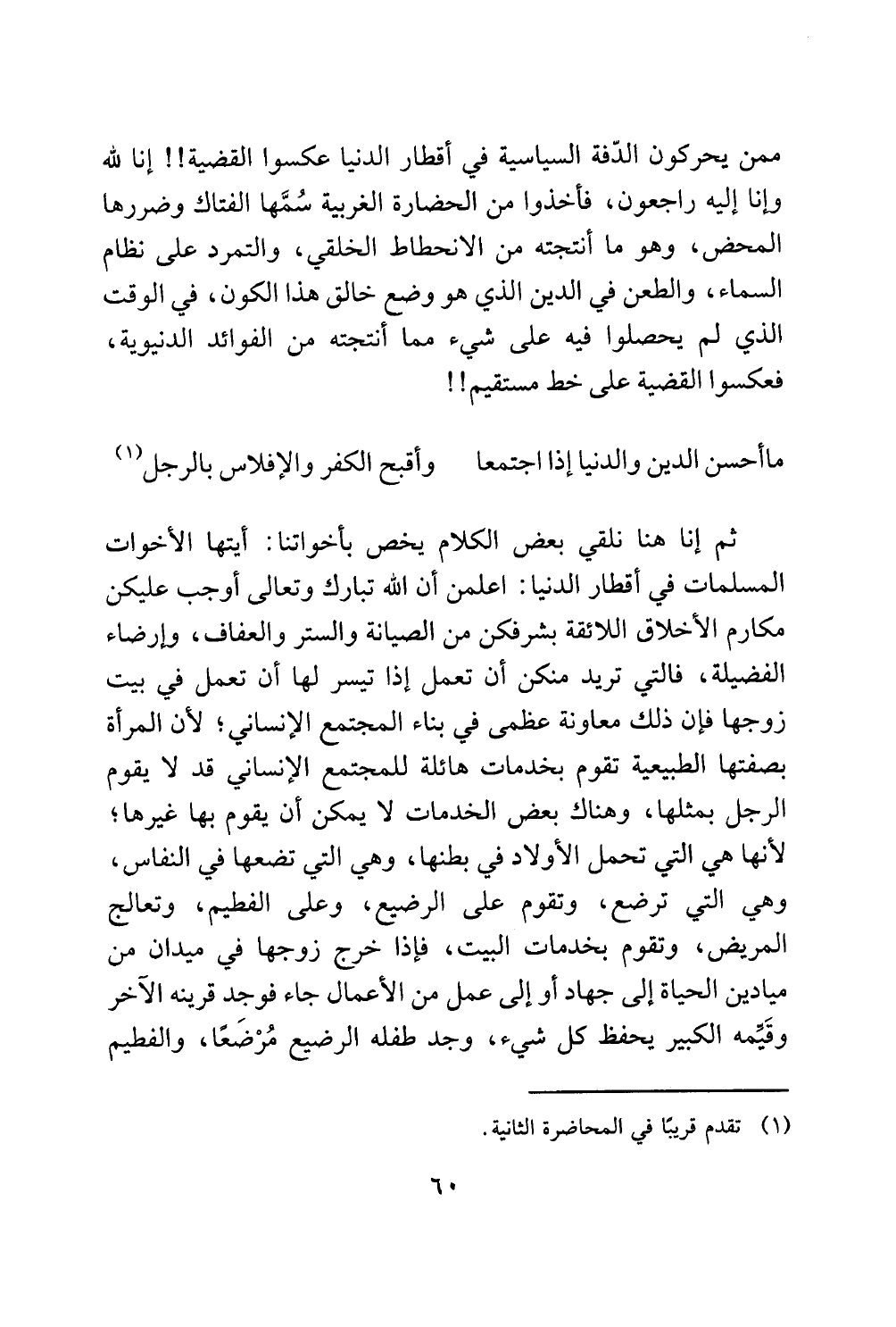 زوجها فإن ذلك معاونة عظمى في بناء المجتمع الانساني؛ لان المرأة