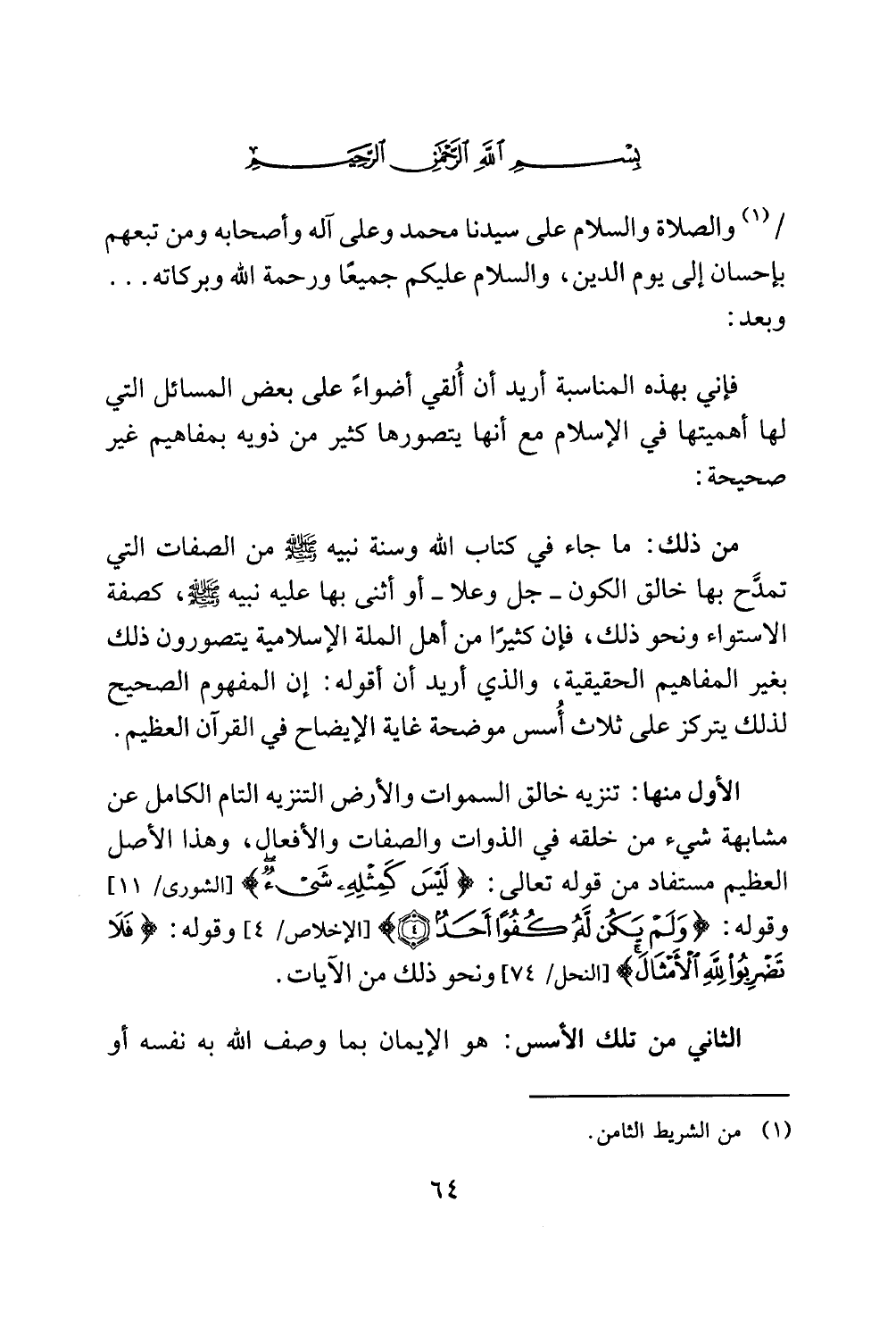 ] لثاني من تلك الاسس: هو الايمان بما وصف الله به نفسه أ و