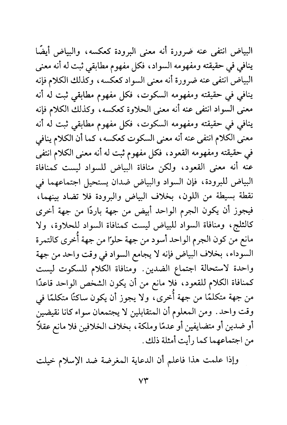 البياض انتفى عنه ضرورة أنه معنى السواد كعكسه، وكذلك الكلام فإنه