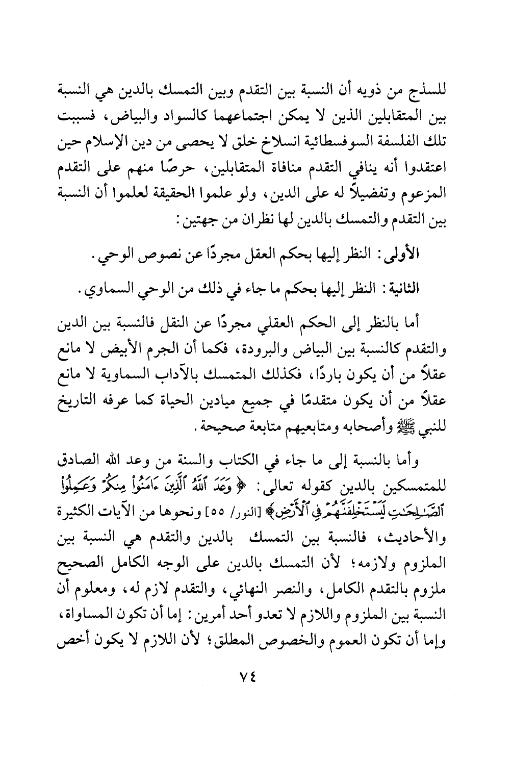 والاحاديث، فالنسبة بين التمسك بالدين والتقدم هي النسبة بين