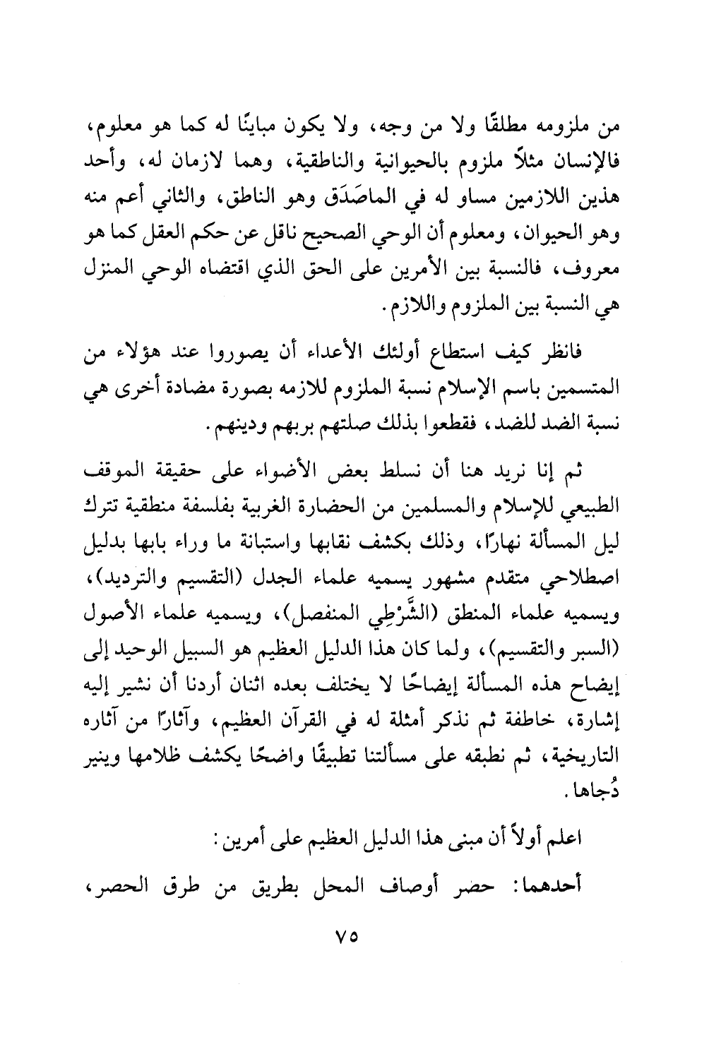 (السبر والتقسيم)، ولما كان هذا الدليل العظيم هو السبيل الوحيد إلى
