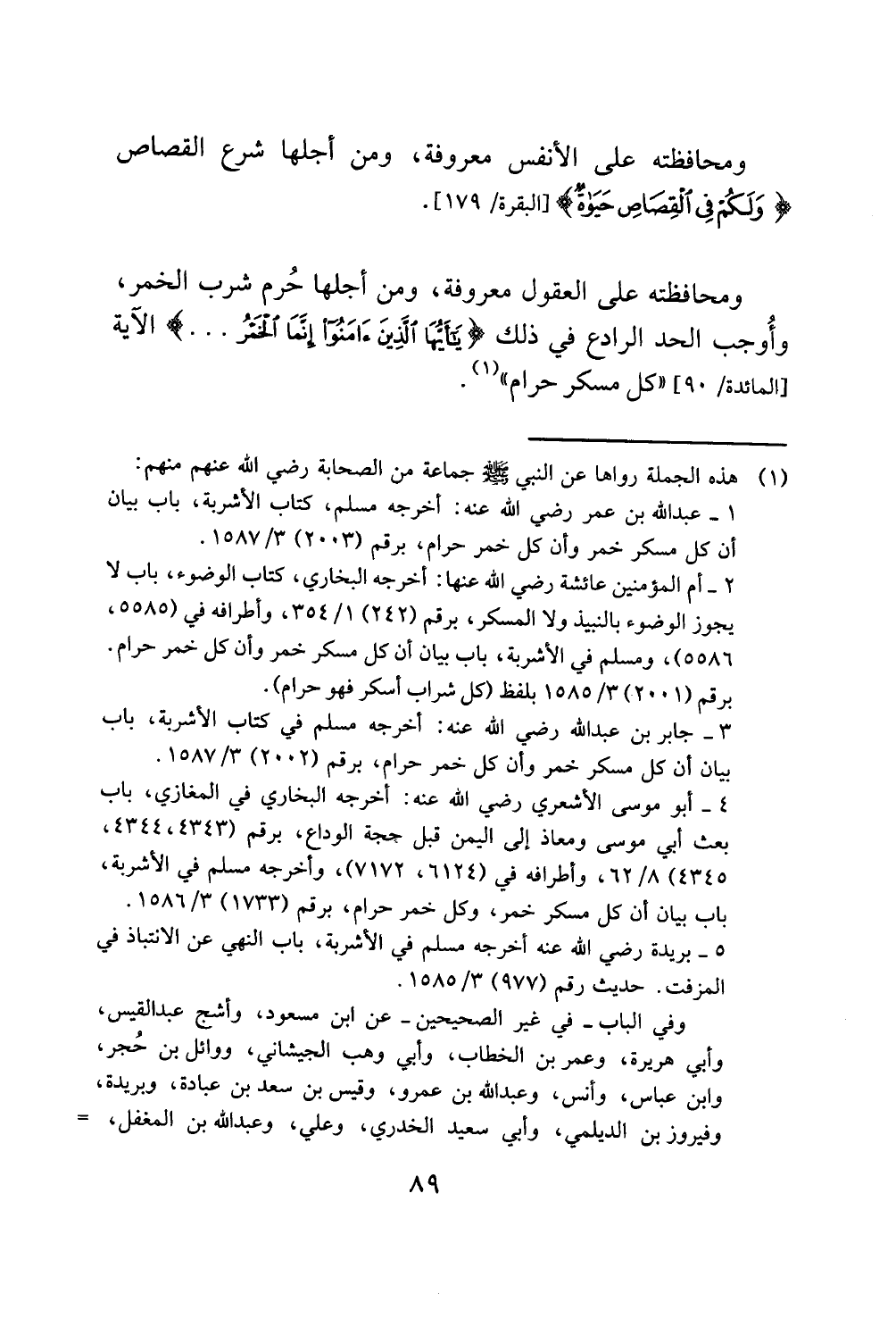 ان كل مسكر خمر و ن كل خمر حر 1 م، برقم (2003) 1587/ 3.