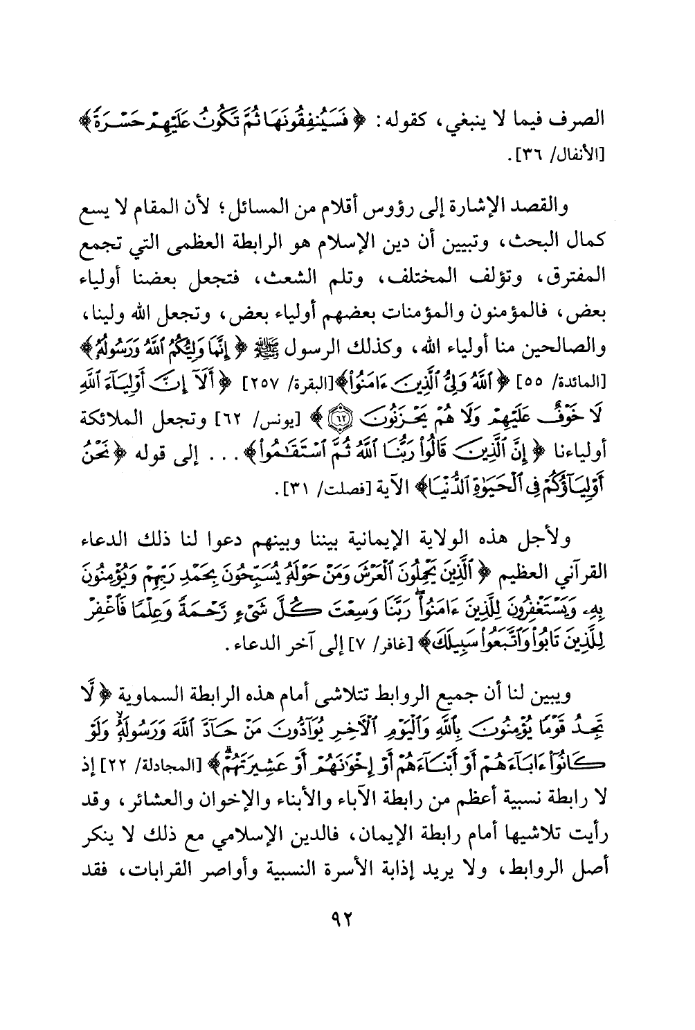 رأيت تلاشيها أمام رابطة الايمان، فالدين الاسلامي مع ذلك لا ينكر