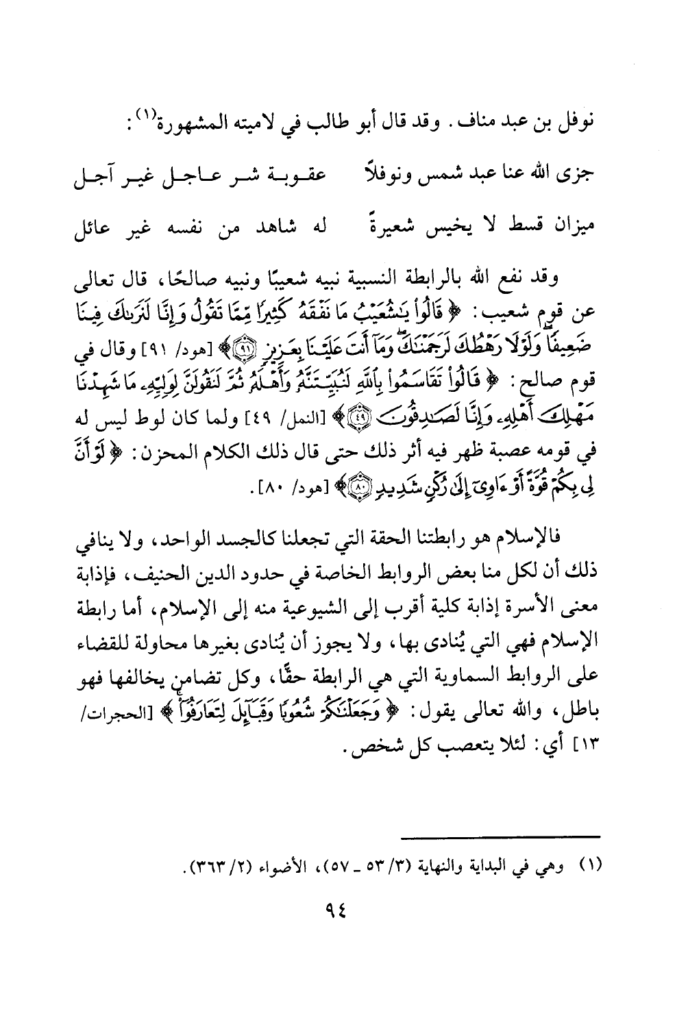 نوفل بن عبد مناف. وقد قال أبو طالب في لاميته المشهورة (1):