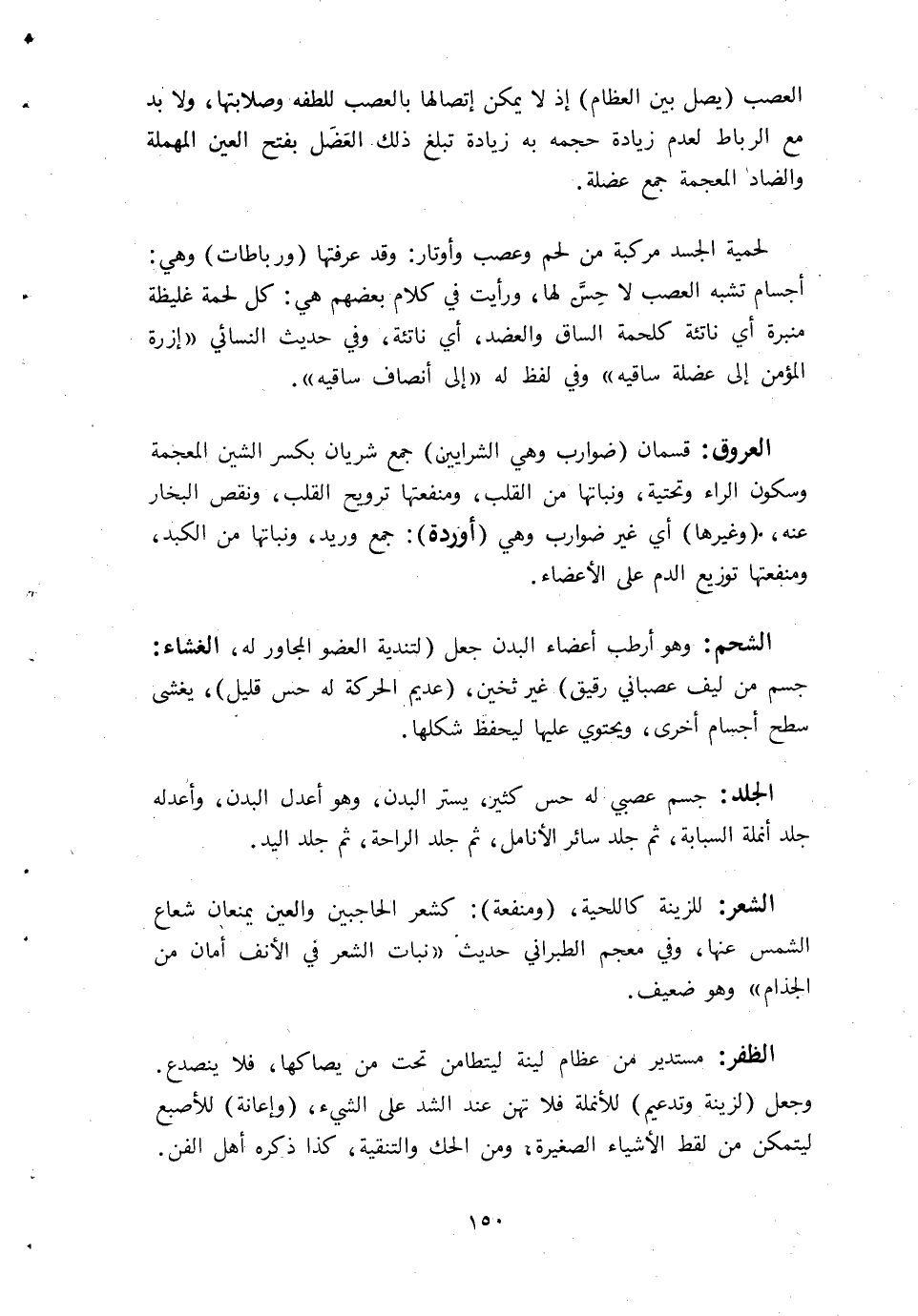الشَّحْم وَهُوَ أرطب أَعْضَاء الْبدن جعل لتندية الْعُضْو المجاور لَهُ الغشاء جسم من لِيف عصباني رَقِيق غير ثخين عديم الْحَرَكَة لَهُ حس قَلِيل يغشى سطح أجسام أُخْرَى ويحتوي عَلَيْهَا ليحفظ شكلها