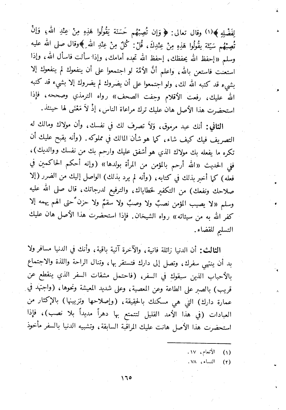 ) وَقَالَ تَعَالَى {وَإِن تصبهم حَسَنَة يَقُولُوا هَذِه من عِنْد الله وَإِن تصبهم سَيِّئَة يَقُولُوا هَذِه من عنْدك قل كل من عِنْد الله} وَقَالَ صلى الله عَلَيْهِ وَسلم