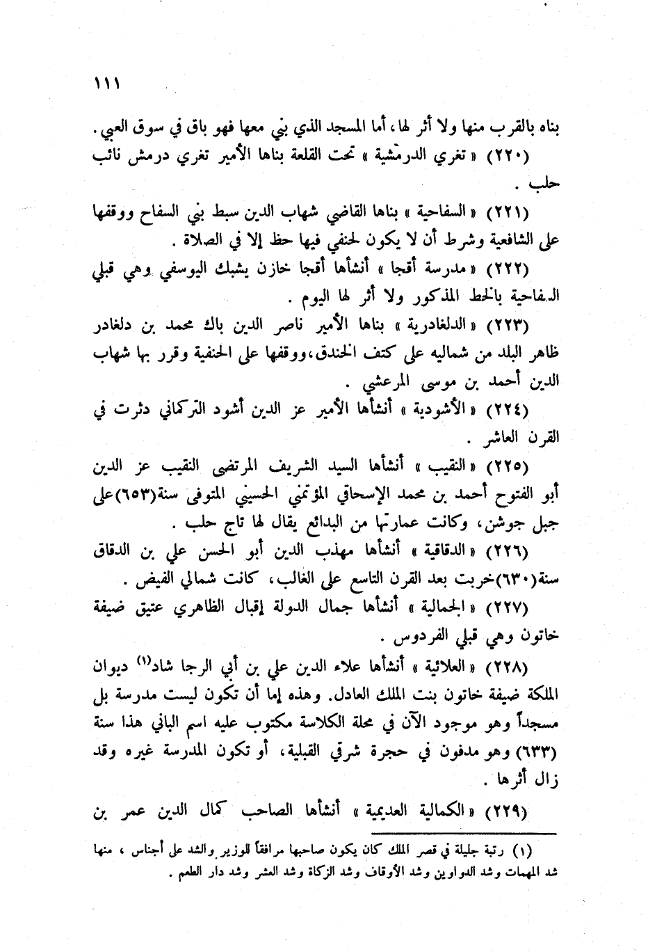 222 - مدرسة أقجا أنشأها أقجا خازن يشبك اليوسفي وهي قبلي السفاحية بالخط المذكور ولا أثر لها اليوم.