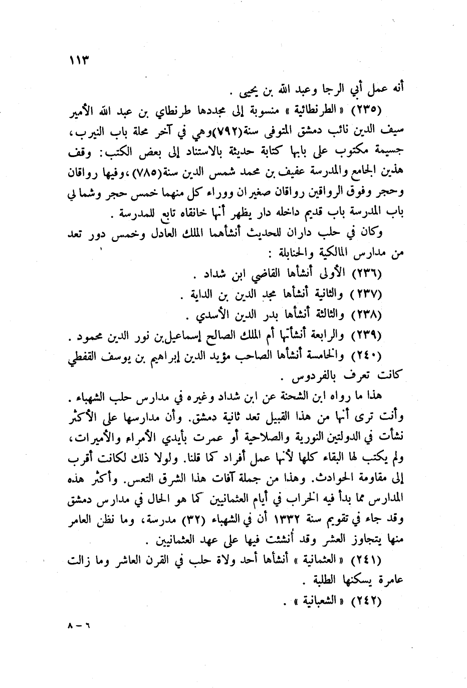 241 - العثمانية أنشأها أحد ولاة حلب في القرن العاشر وما والت عامرة يسكنها الطلبة.
