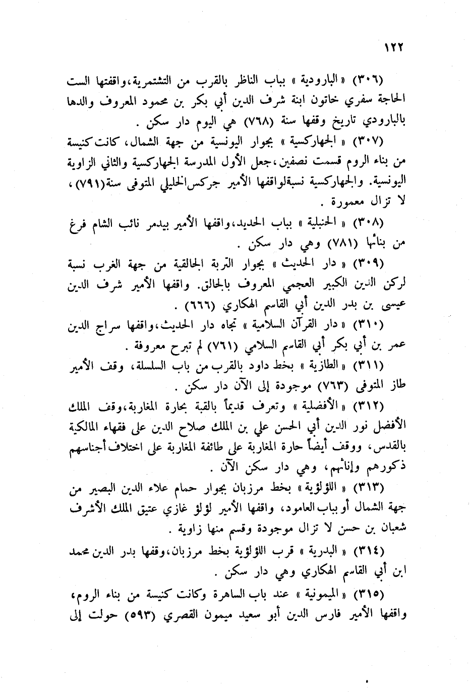 314 - البدرية قرب اللؤلؤية بخط مرزبان، وقفها بدر الدين محمد ابن أبي القاسم الهكاري وهي دار سكن.