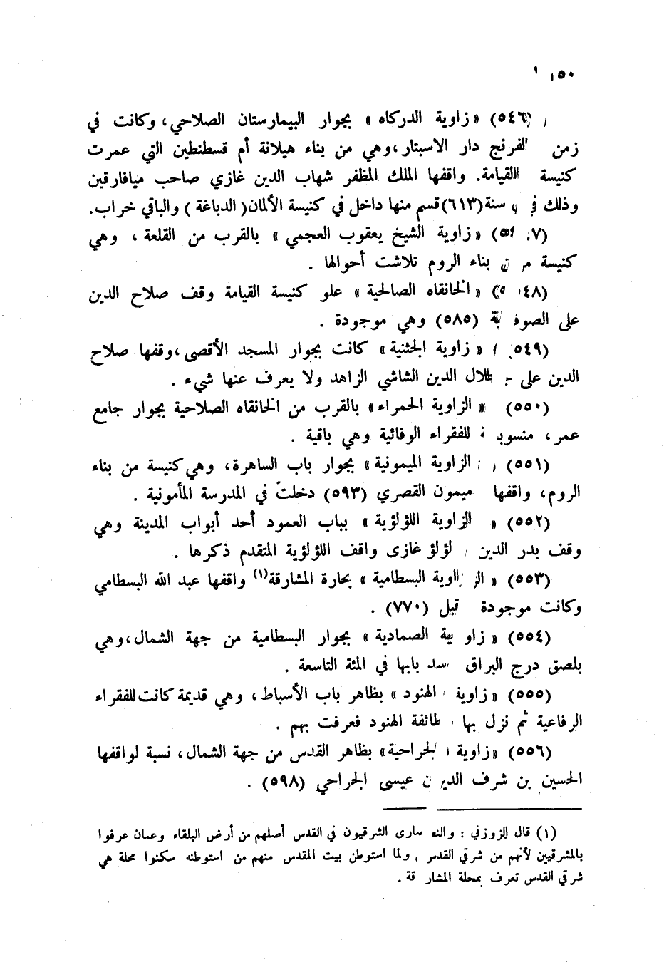549 - زاوية الجثنية كانت بجوار المسجد الاقصى، وقفها صلاح الدين على جلال الدين الشاشي الزاهد ولا يعرف عنها شيء.
