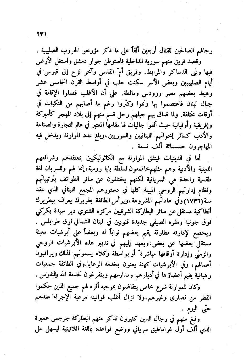 القدس وآخر نزح إلى قبرس في أيام الصليبيين وبعض الأسر سكنت حلب في أواسط القرن الخامس عشر وهبط بعضهم مصر ورودس ومالطة. على أن الأغلب فضلوا الإقامة في جبال لبنان فاعتصموا بها ونموا وكثروا رغم ما أصابهم من النكبات في أوقات مختلفة. ولما ضاق بهم جبلهم رحل قسم منهم إلى بلاد المهجر كأمريكة وإفريقية وأوقيانية حيث ألفوا جاليات لها مقامها المعتبر في عالم التجارة والصناعة والأدب كسائر إخوانهم اللبنانيين والسوريين، وبلغ عدد الموازنة ويدخل فيه المهاجرون خمسمائة ألف نسمة.