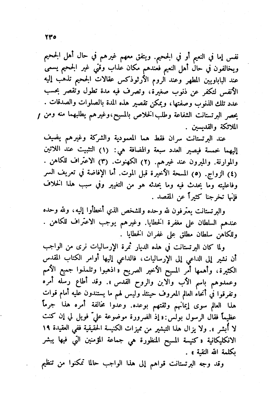 نفس أما في النعيم أو في الجحيم. ويتفق معهم في حال أهل الجحيم ويخالفون في حال أهل النعيم فعندهم مكان عذاب وقتي غير الجحيم يسمى عند الباباويين المطهر وعند الروم الأرثوذكس عقالات الجحيم تذهب إليه الأنفس لتكفر عن ذنوب صغيرة، وتصرف فيه مدة تطول وتقصر بحسب عدد تلك الذنوب وصفتها، ويمكن تقصير هذه المدة بالصلوات والصدقات. يحصر البروتستانت الشفاعة وطلب الخلاص بالمسيح، وغيرهم يطلبهما منه ومن الملائكة والقديسين.