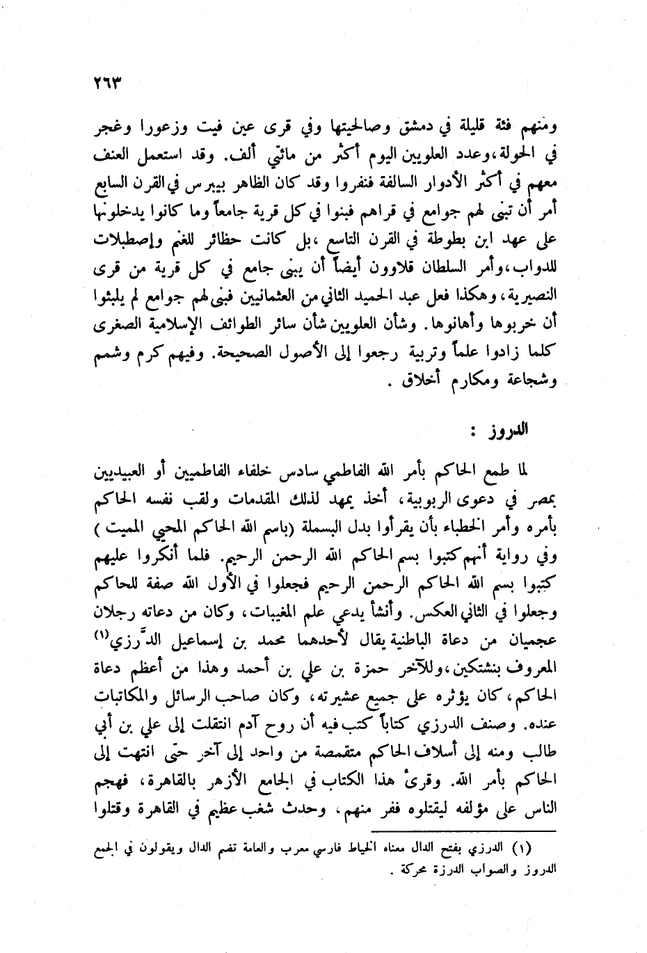 ومنهم فئة قليلة في دمشق وصالحيتها وفي قرى عين فيت وزعورا وغجر في الحولة، وعدد العلويين اليوم أكثر من مائتي ألف. وقد استعملوا العنف معهم في أكثر الأدوار السالفة فنفروا وقد كان الظاهر بيبرس في القرن السابع أمر أن تبنى لهم جوامع
