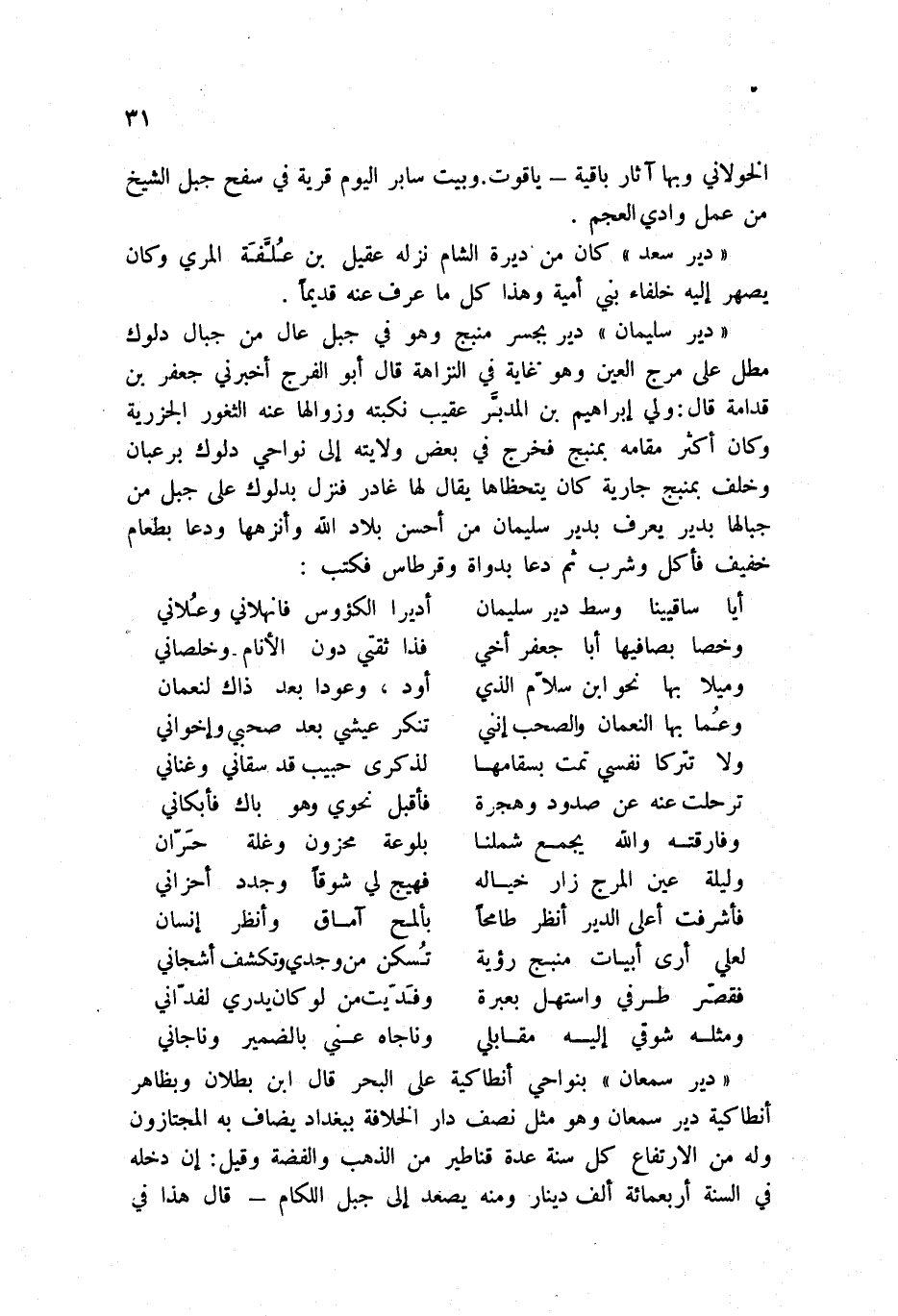 أيا ساقيينا وسط دير سليمان ... أدير الكؤوس فانهلاني وعلاني