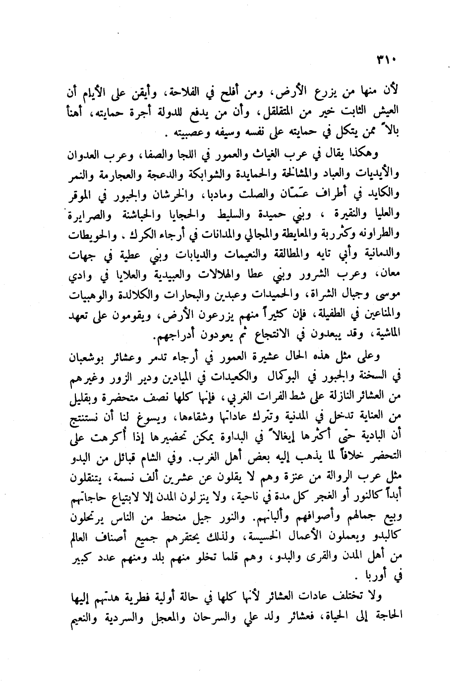 لأن منها من يزرع الأرض، ومن أفلح في الفلاحة، وأيقن على الأيام أن العيش الثابت خير من المتقلقل، وأن من يدفع للدولة أجرة حمايته، أهنأ بالاَ ممن يتكل في حمايته على نفسه وسيفه وعصبيته.
